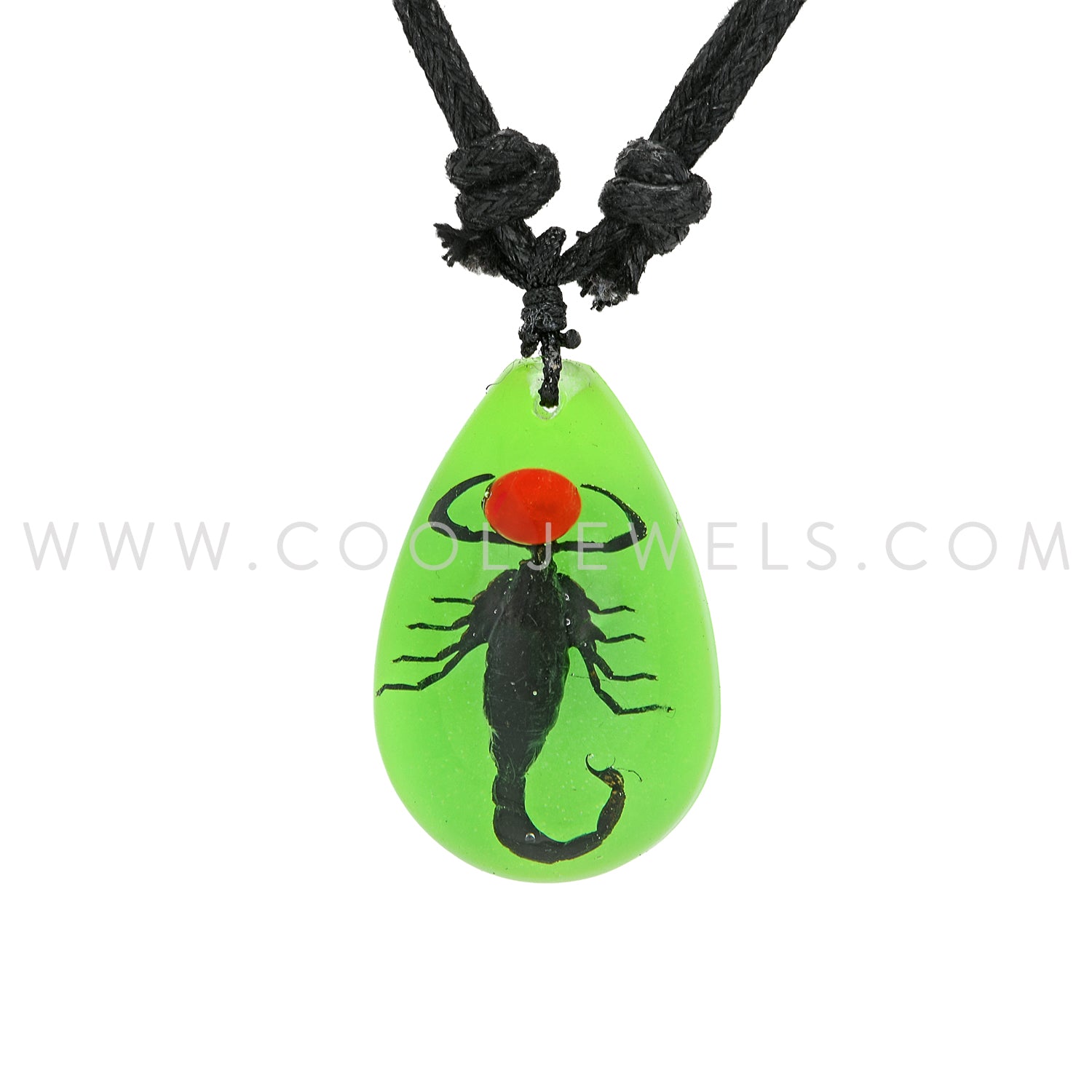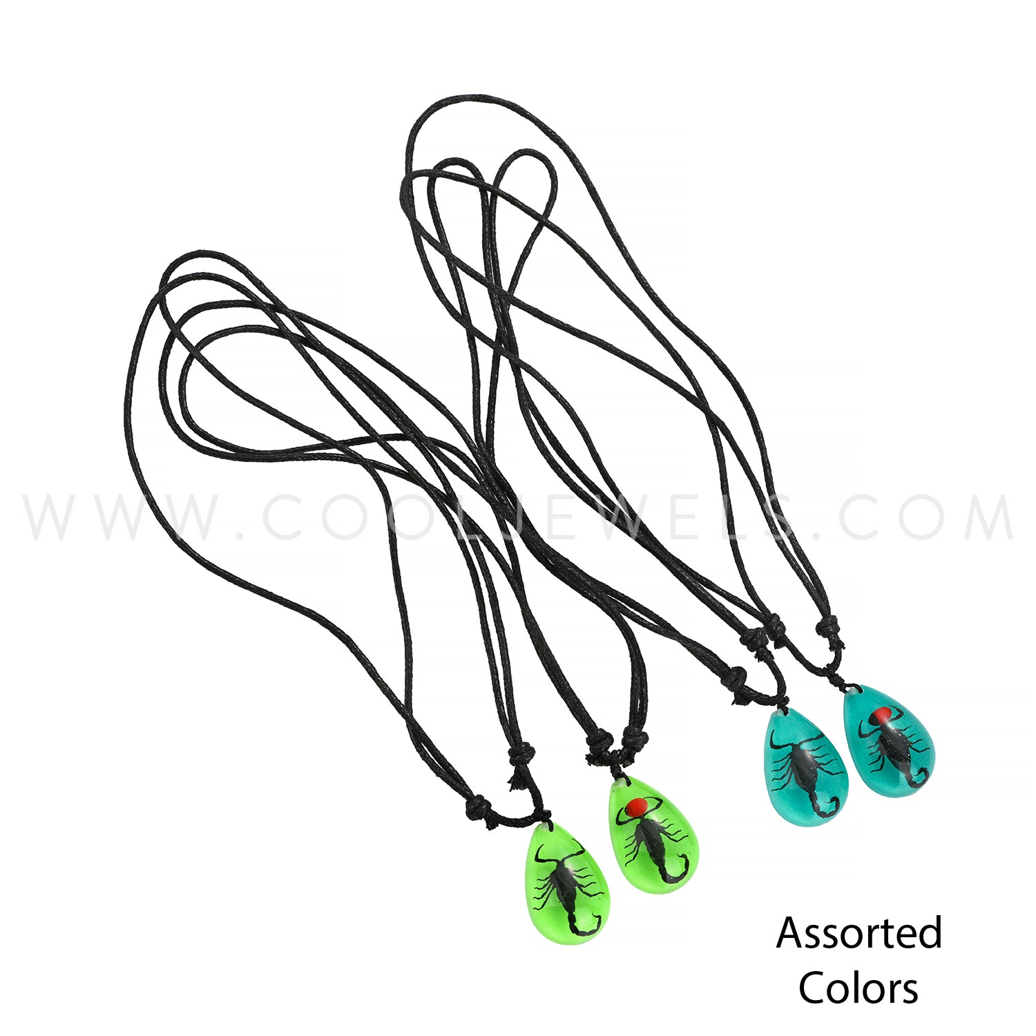 BLACK SLIDER CORD NECKLACE WITH GLOW-IN-THE-DARK SCORPION PENDANT