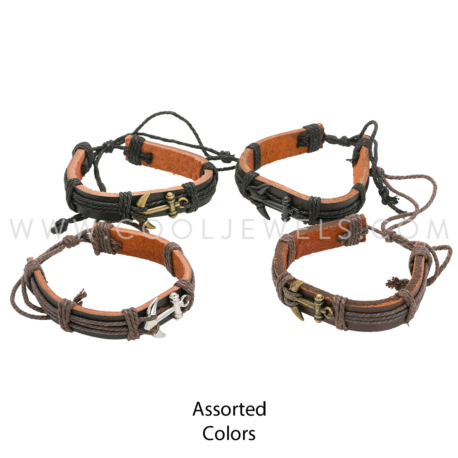 Assorted Anchor Leather Slider Bracelet
