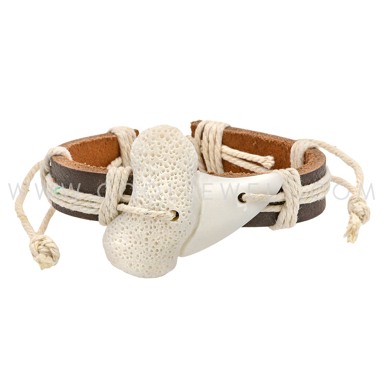 These Leather Slider Resin Tooth Bracelets feature a variety of colored leather bands and strings accented with resin tooth pendant.