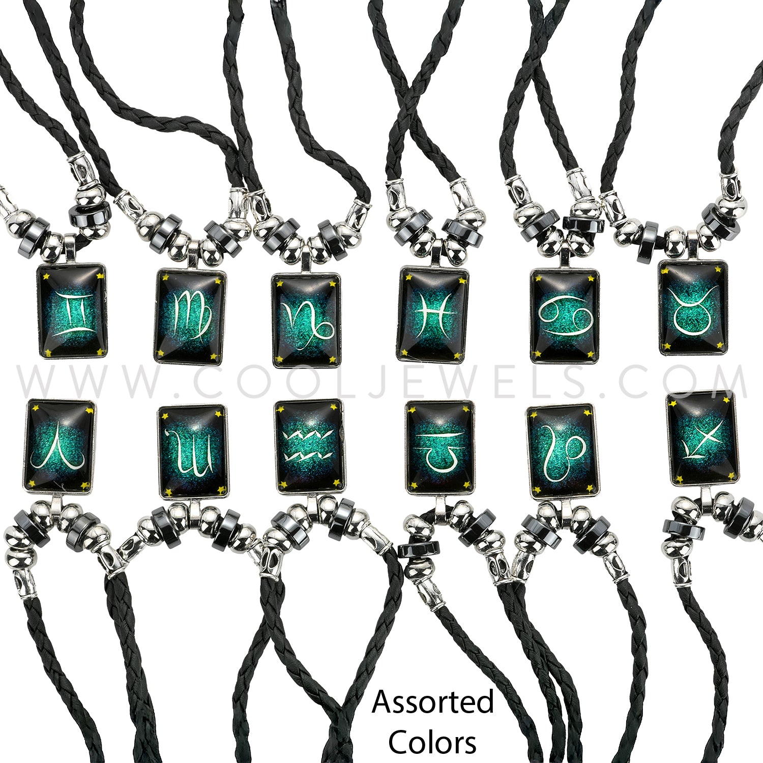 BLACK BRAIDED SLIDER NECKLACE WITH ZODIAC PENDANT - ASSORTED