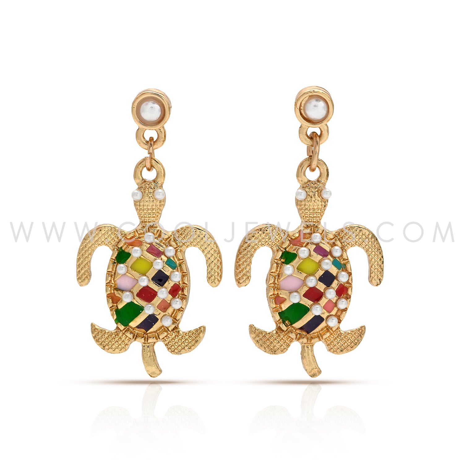 POST EARRINGS WITH COLORFUL TURTLE PENDANTS