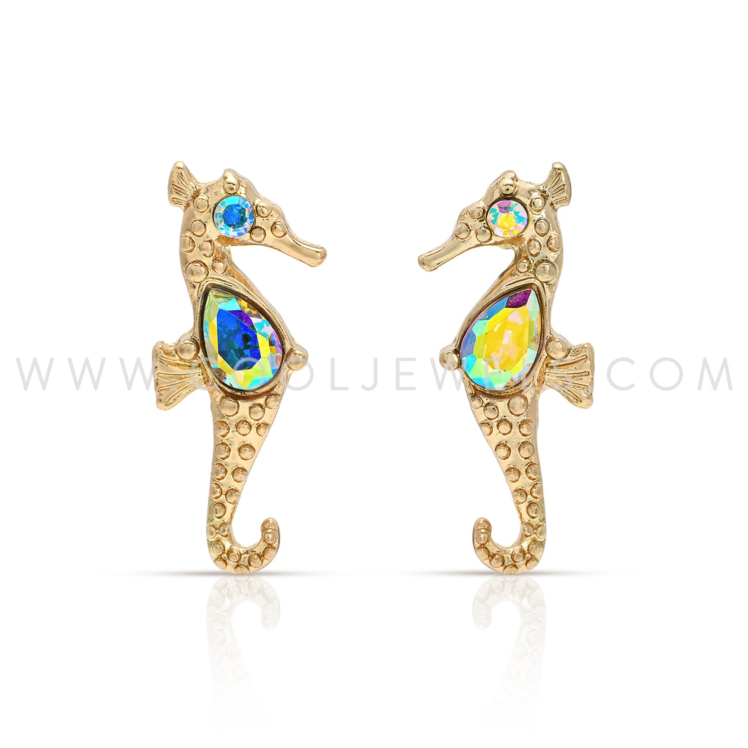 GOLD POST RHINESTONE SEAHORSE EARRINGS