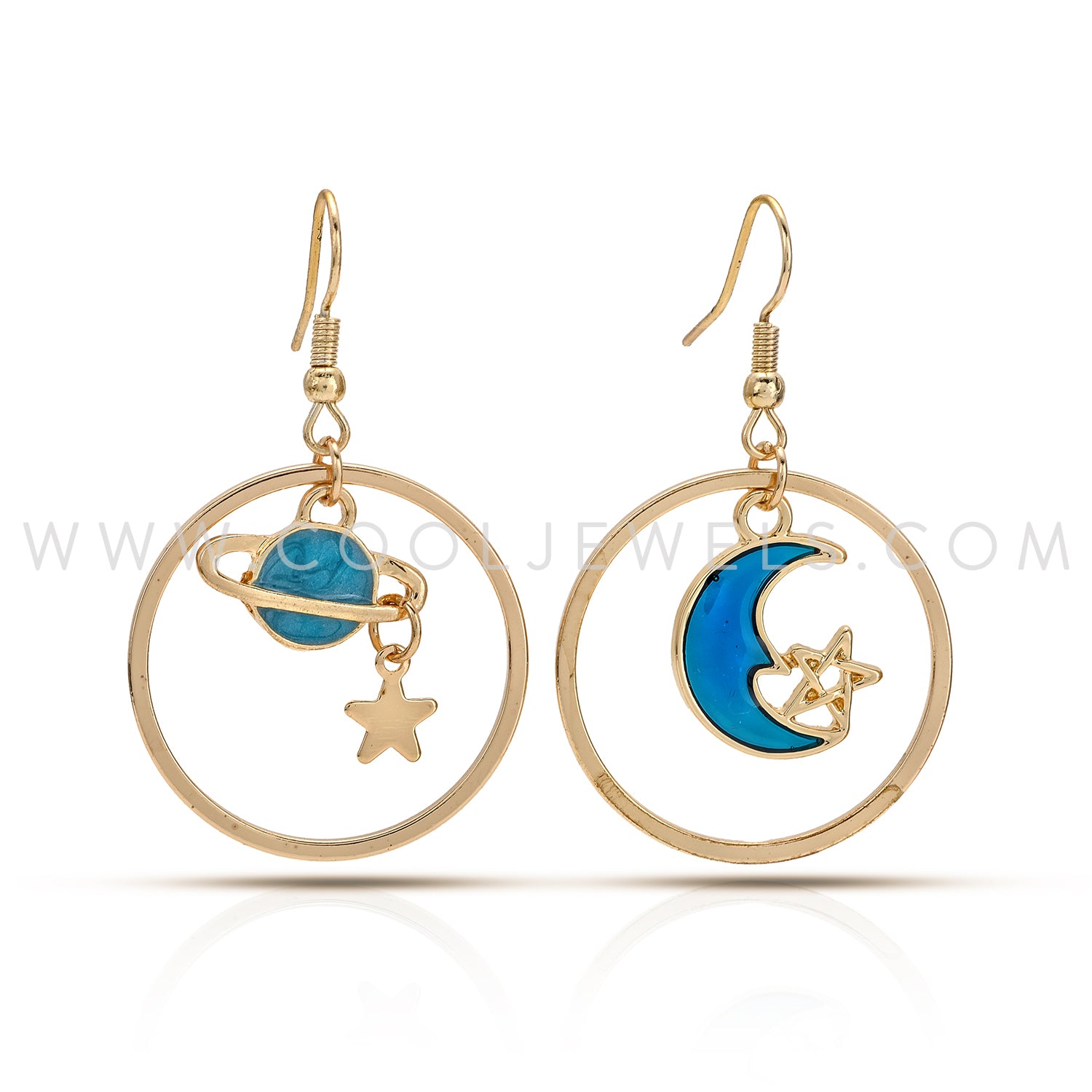 ROUND FISH HOOK EARRING WITH PLANETS AND STARS