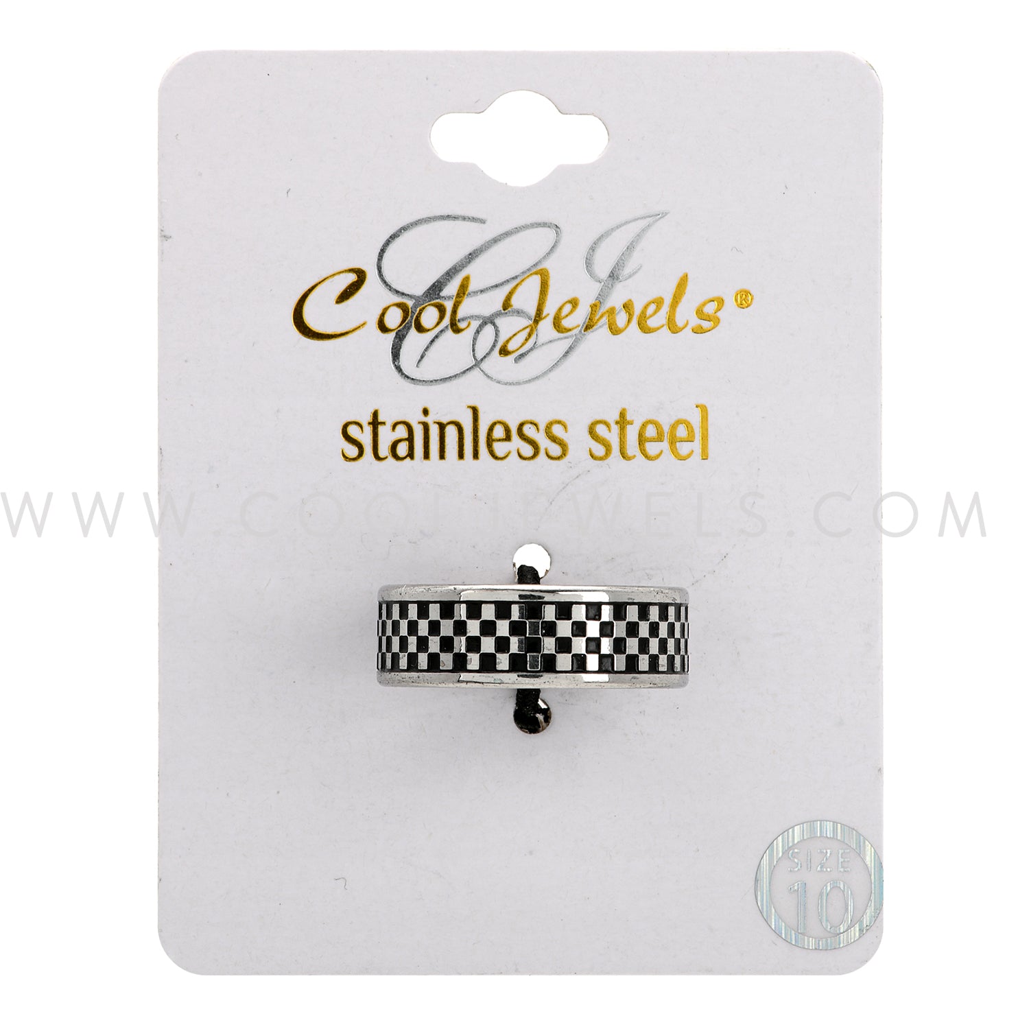 STAINLESS STEEL RING WITH CHECKER DESIGN ASSORTED - CARDED