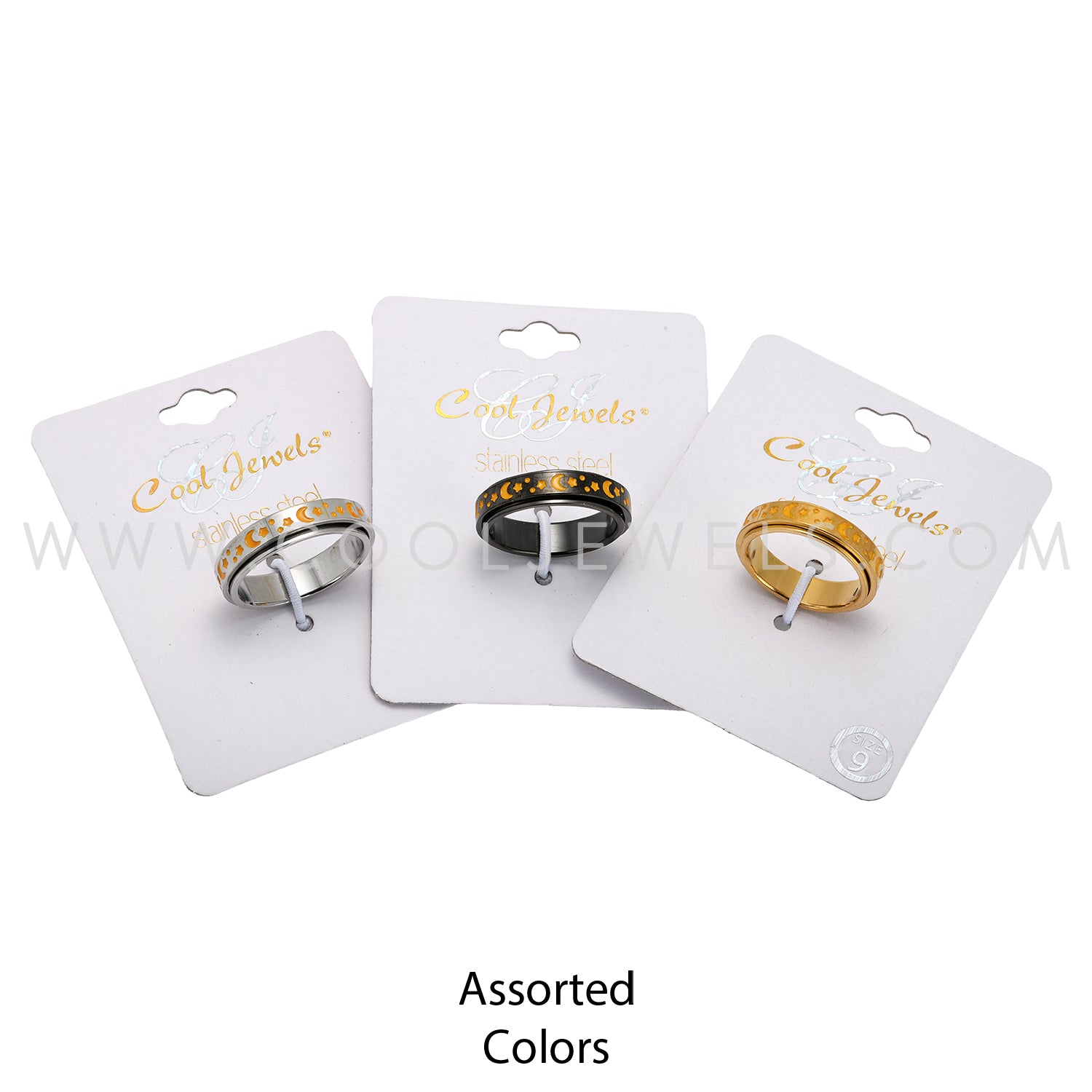 STAINLESS STEEL SPINNER RING WITH MOON AND STAR IN CENTER ASSORTED - CARDED