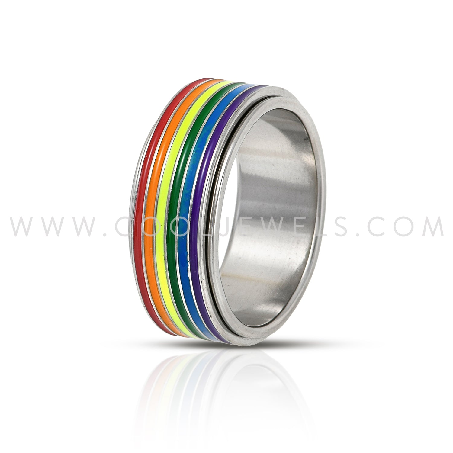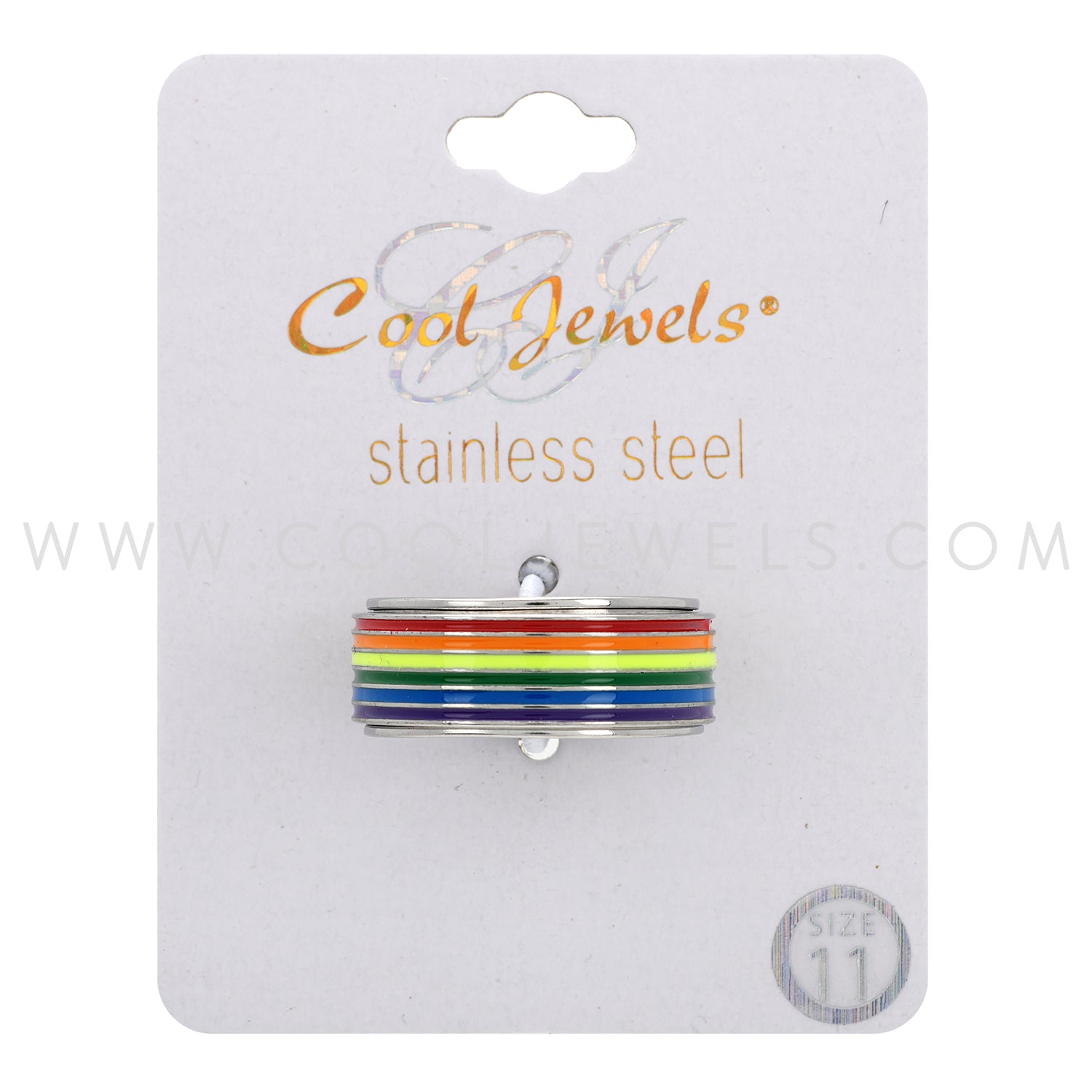 STAINLESS STEEL SPINNER RING WITH CENTER DESIGN ASSORTED - CARDED