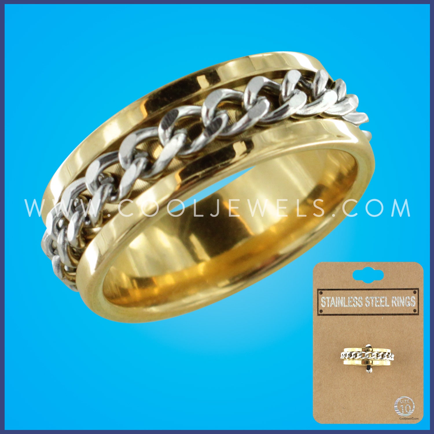 STAINLESS STEEL BAND WITH GOLD TRIM & CHAIN CENTER - CARDED