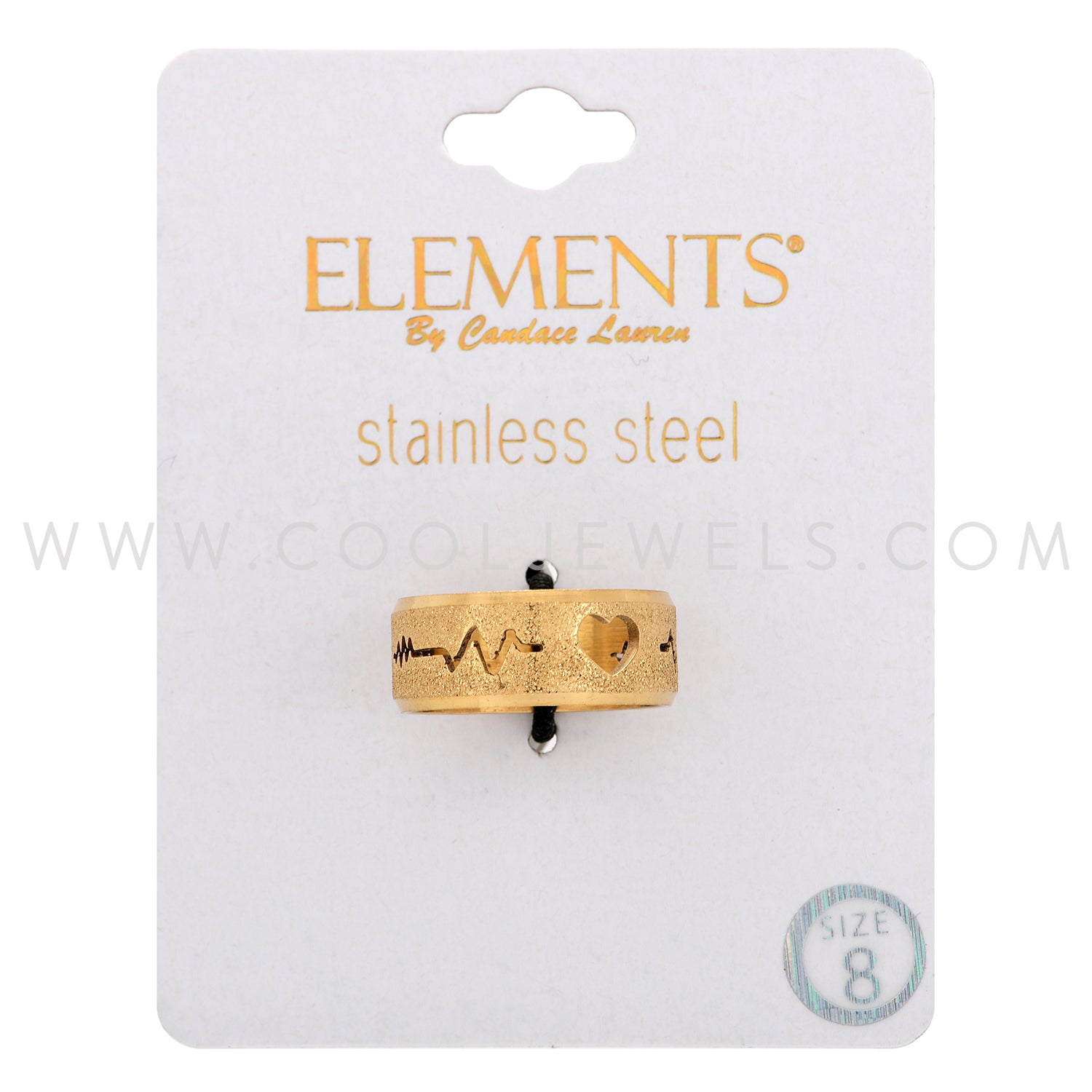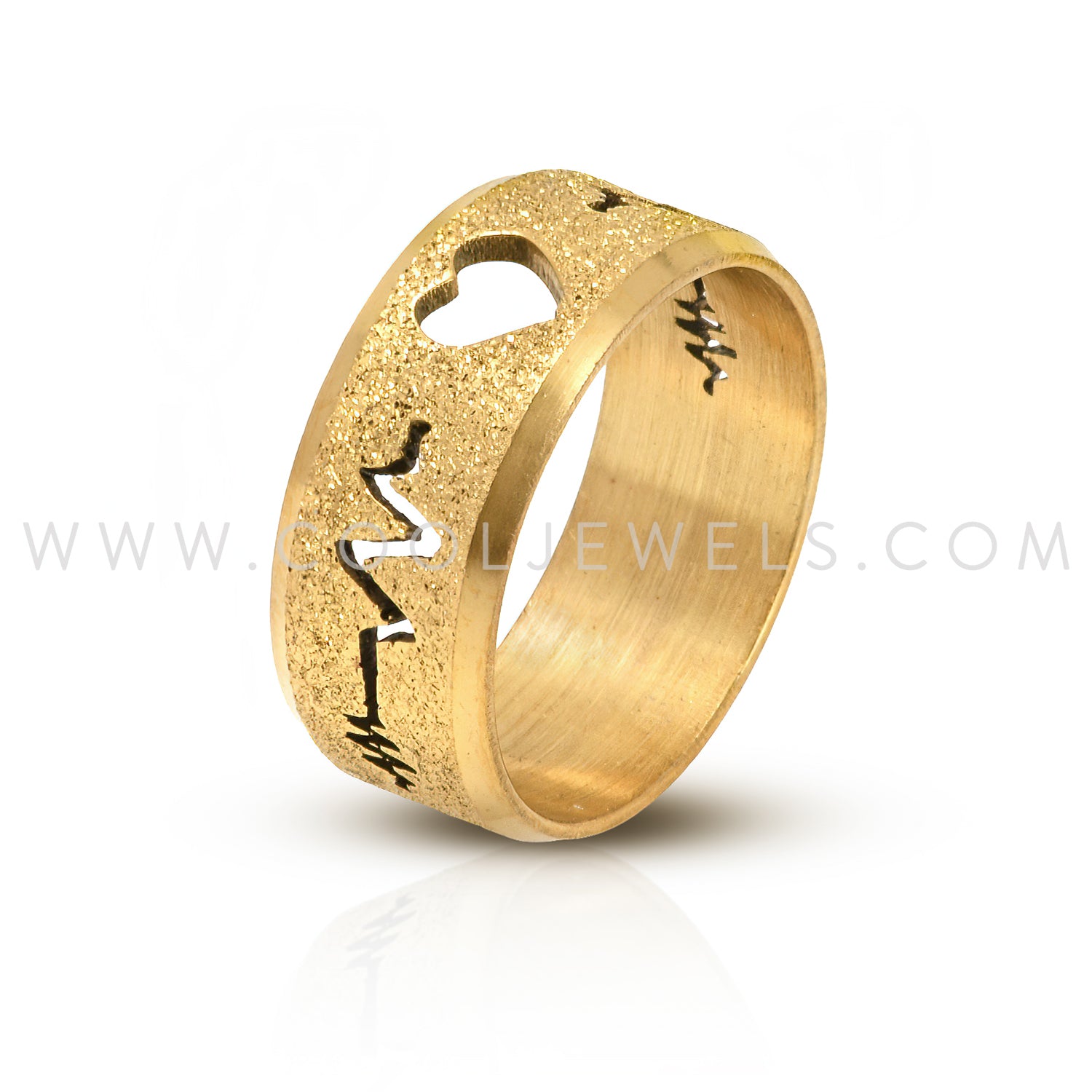 GOLD STAINLESS STEEL RING WITH HEARTBEAT CUTOUT AROUND BAND - CARDED