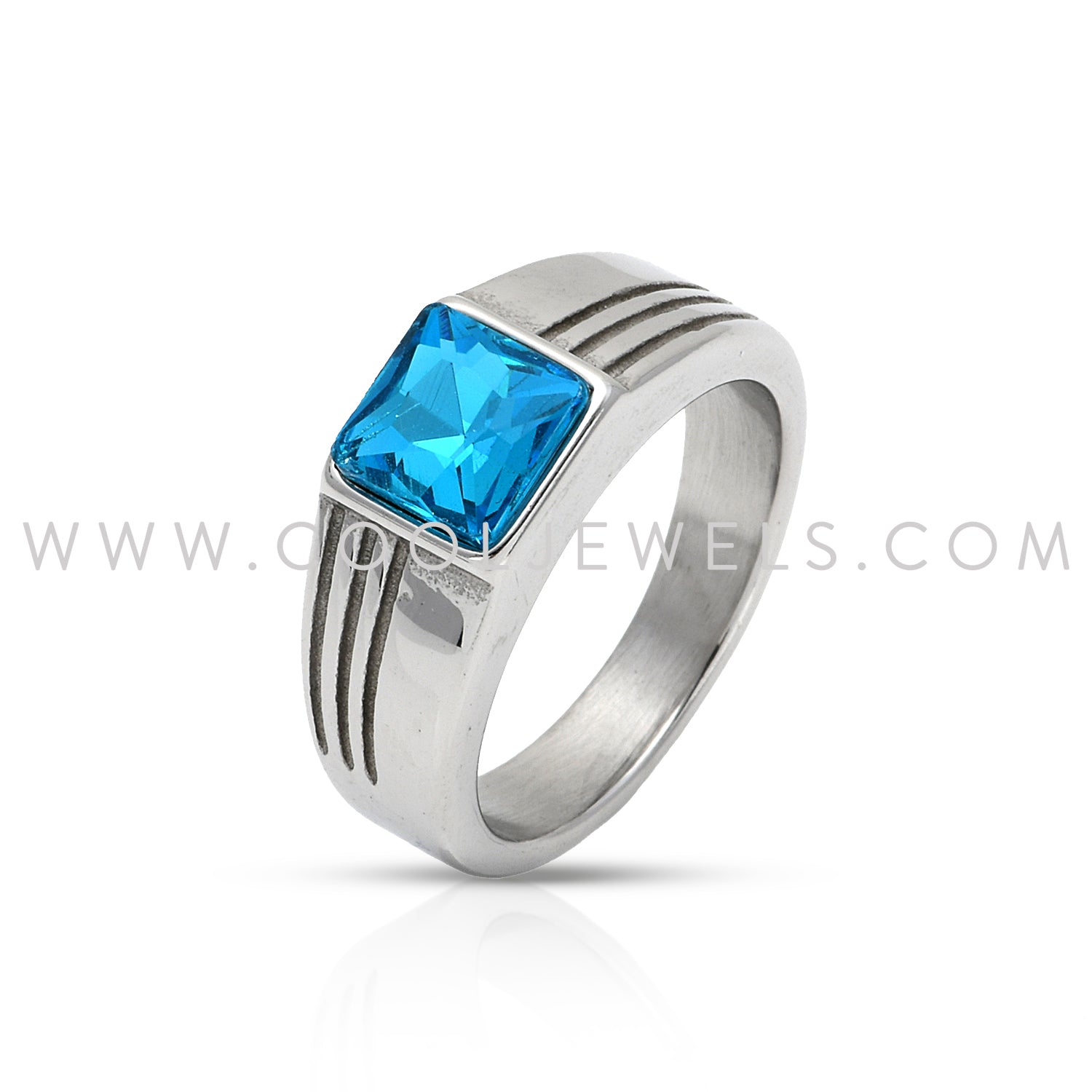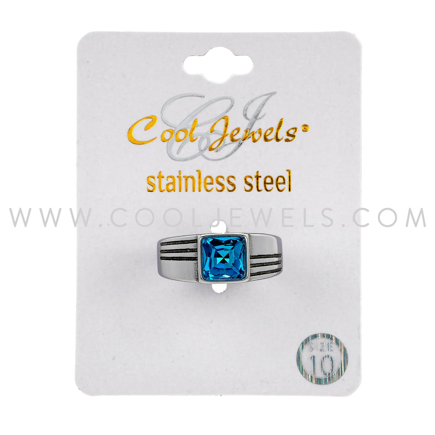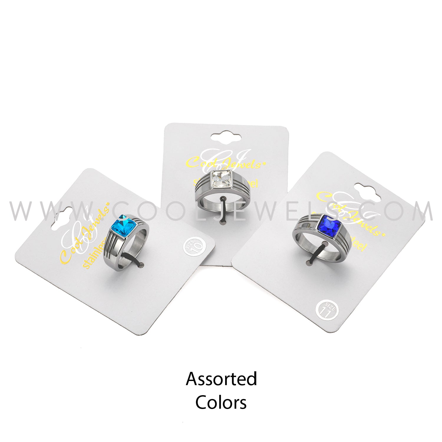 STAINLESS STEEL RING WITH COLOR STONE - CARDED