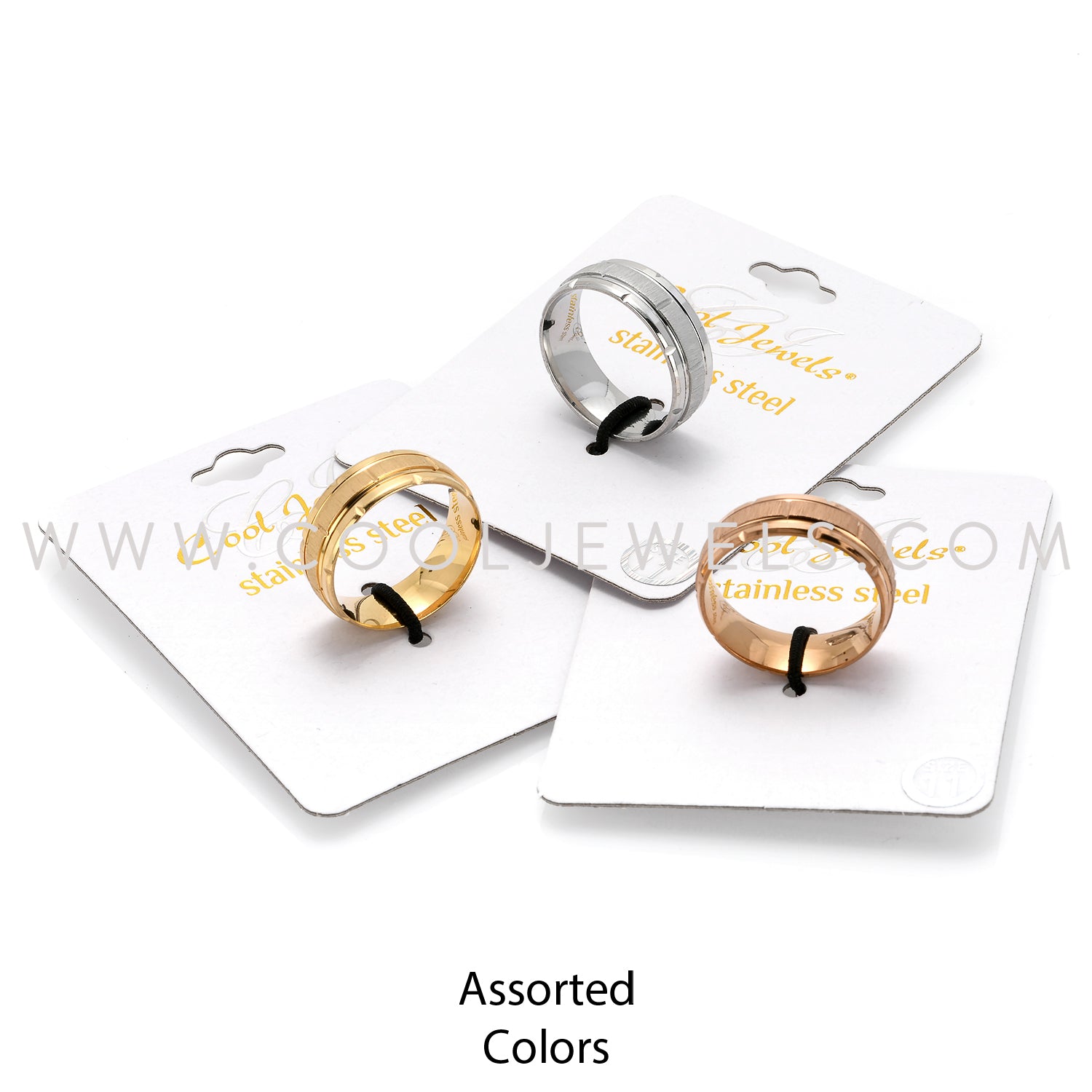 STAINLESS STEEL RING WITH DESIGN IN CENTER - CARDED - ASSORTED