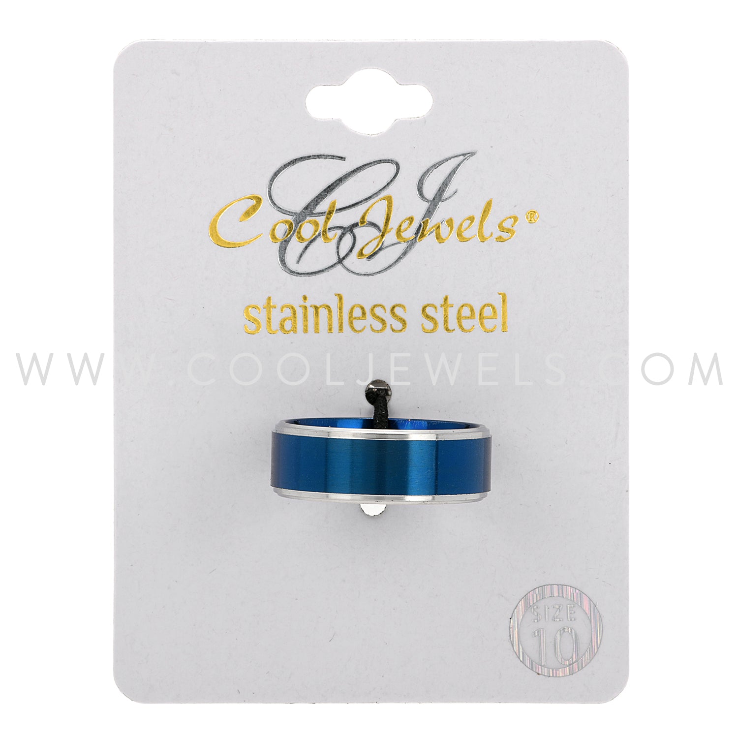STAINLESS STEEL RING WITH DESIGN IN CENTER ASSORTED - CARDED