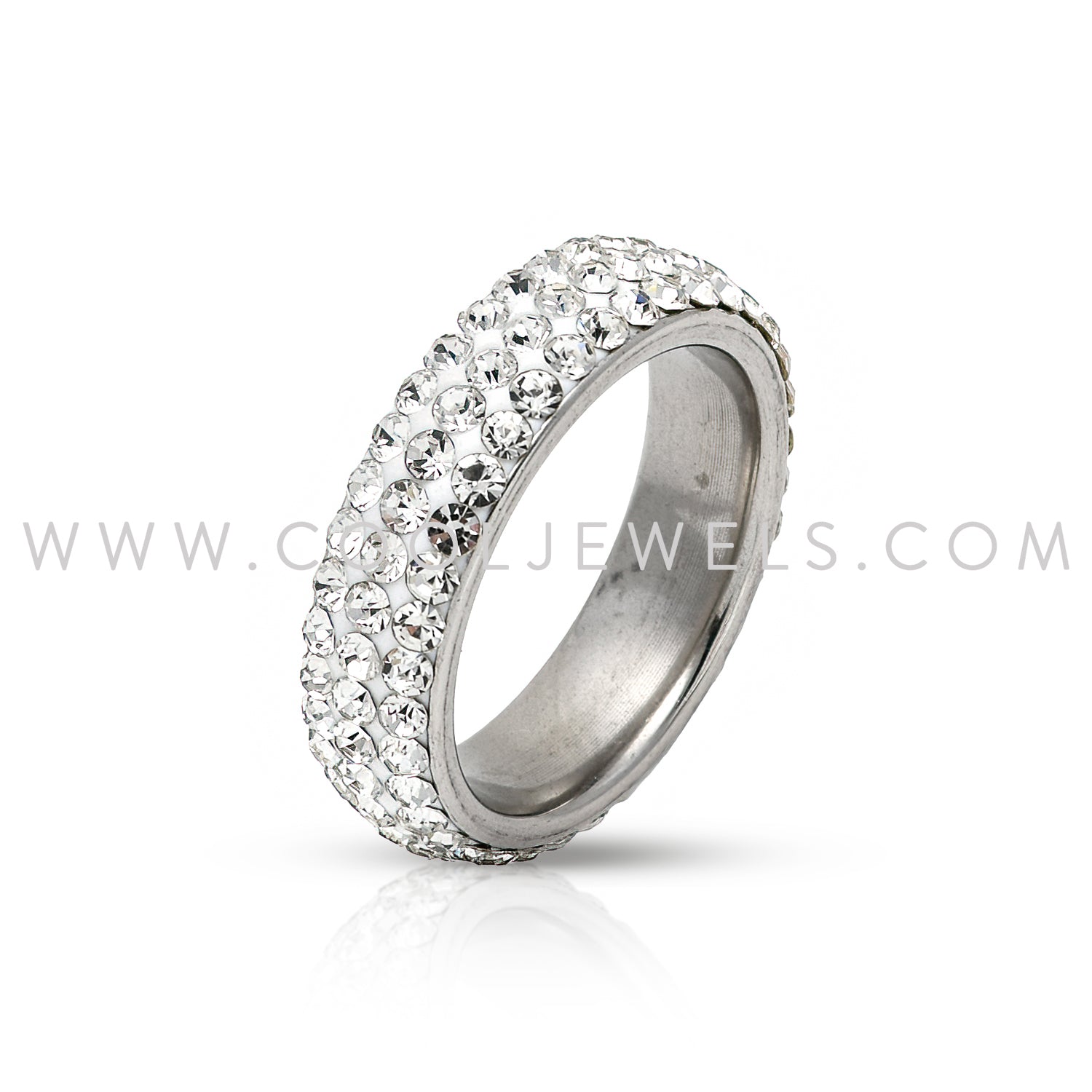 STAINLESS STEEL RING WITH RHINESTONE - CARDED
