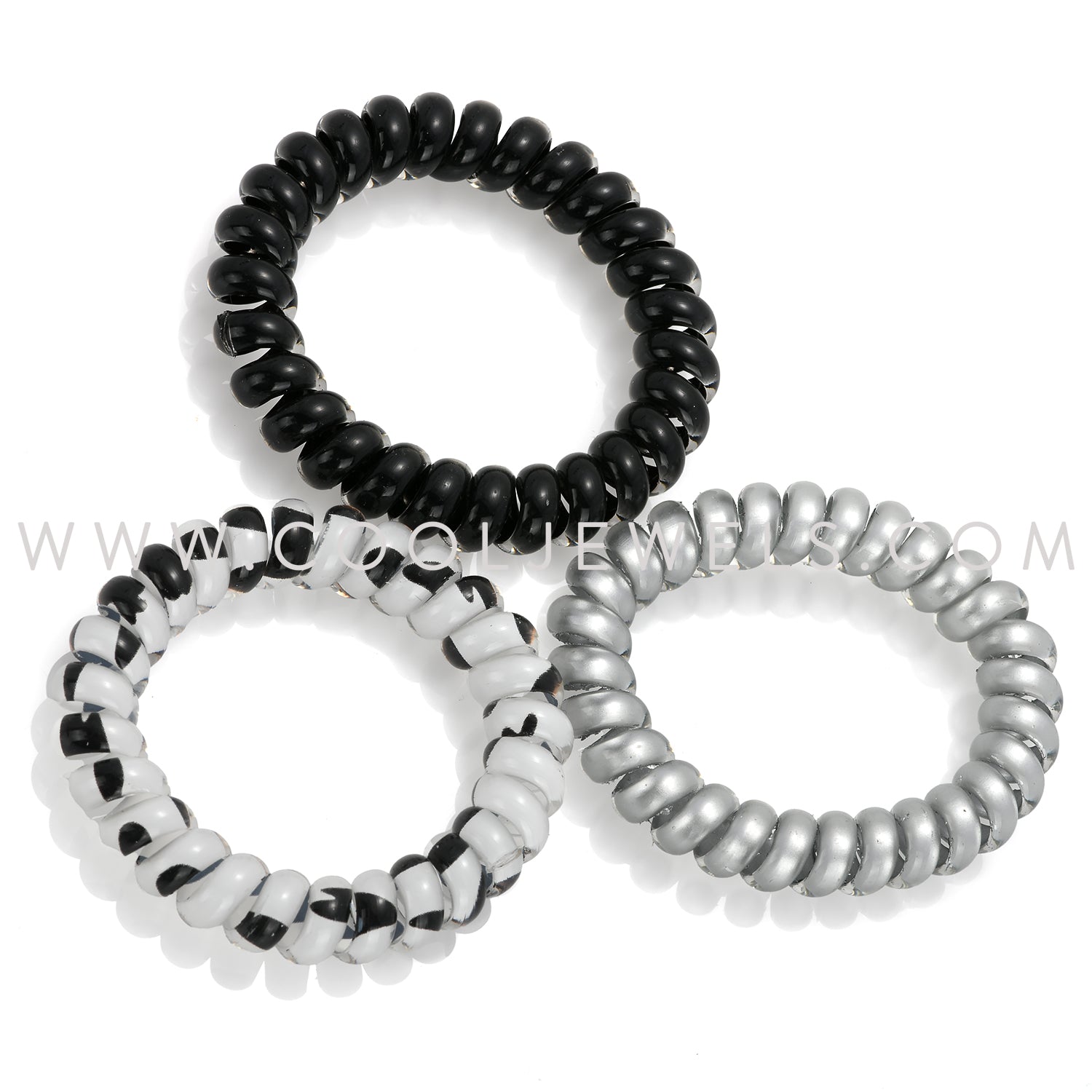 (SET OF 3) TELEPHONE CORD PONY TAIL HOLDER / BRACELET - ASSORTED