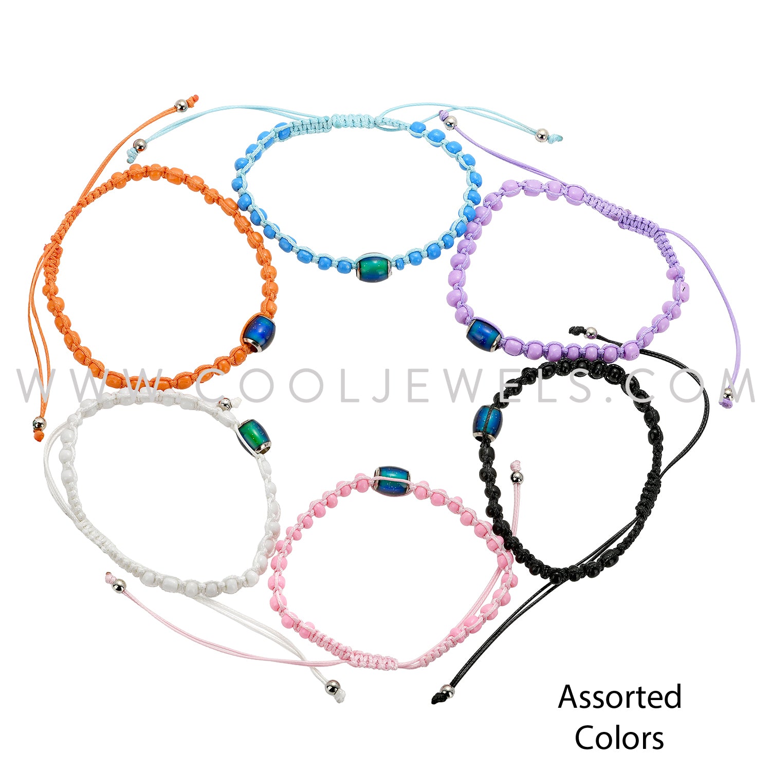 BRAIDED SLIDER CORD BRACELET WITH LONG MOOD TUBE BEAD ASSOTED - CARDED