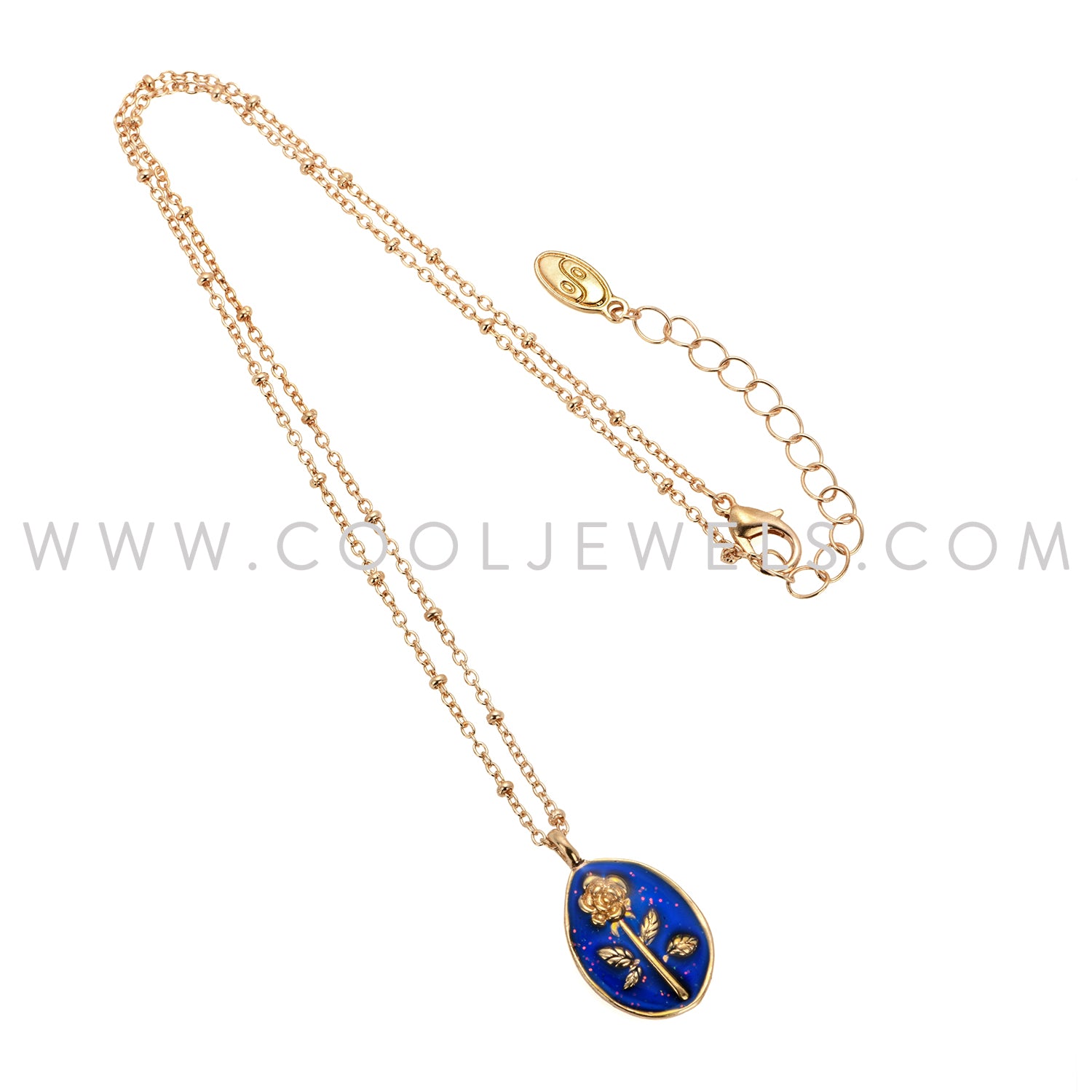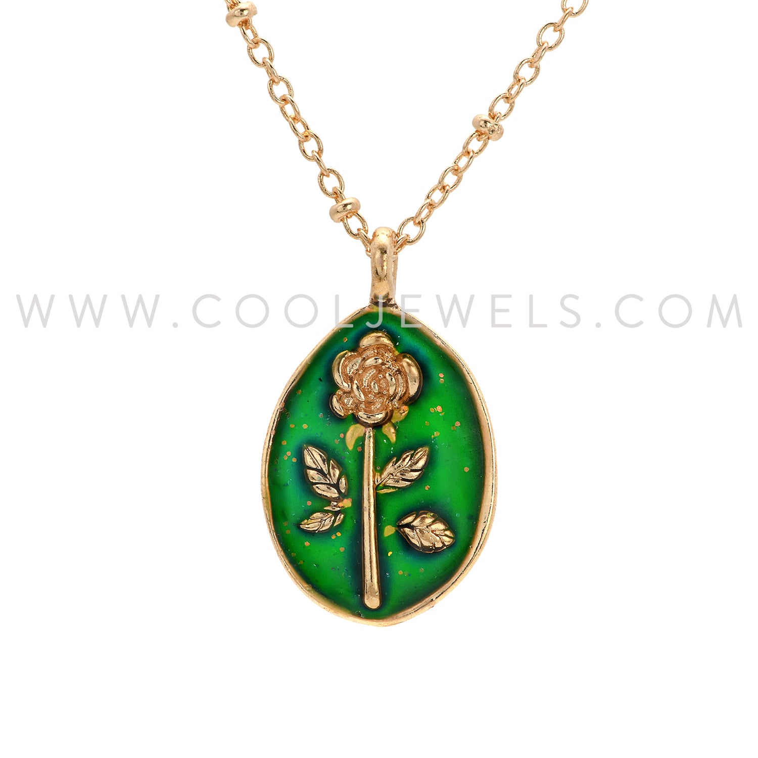 GOLD CHAIN NECKLACE WITH OVAL MOOD FLOWER PENDANT