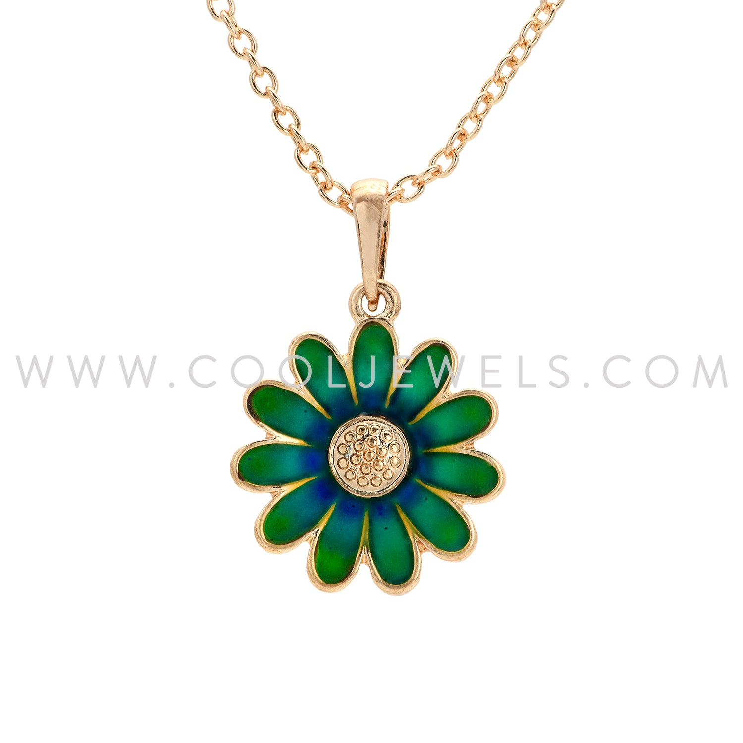 GOLD LINK CHAIN NECKLACE WITH MOOD DAISY PENDANT