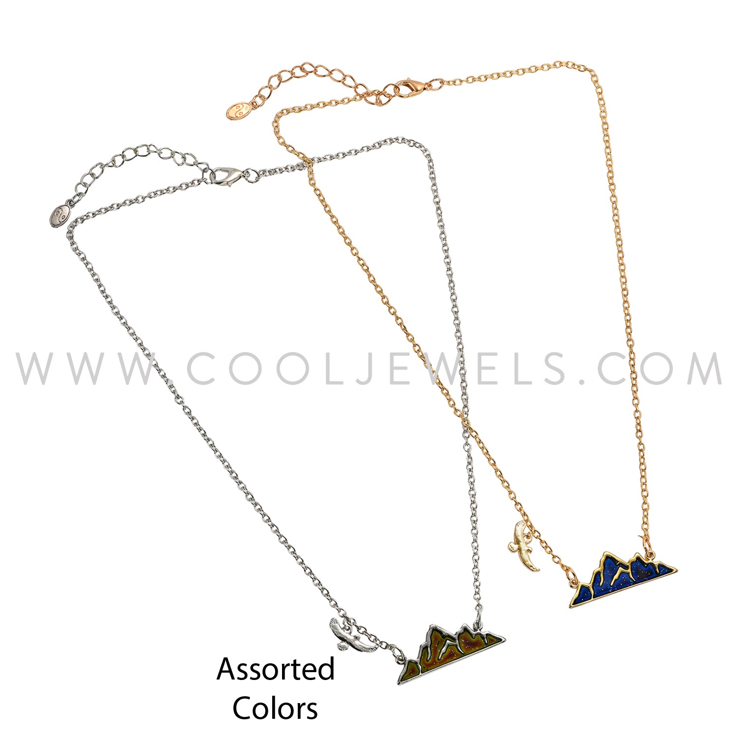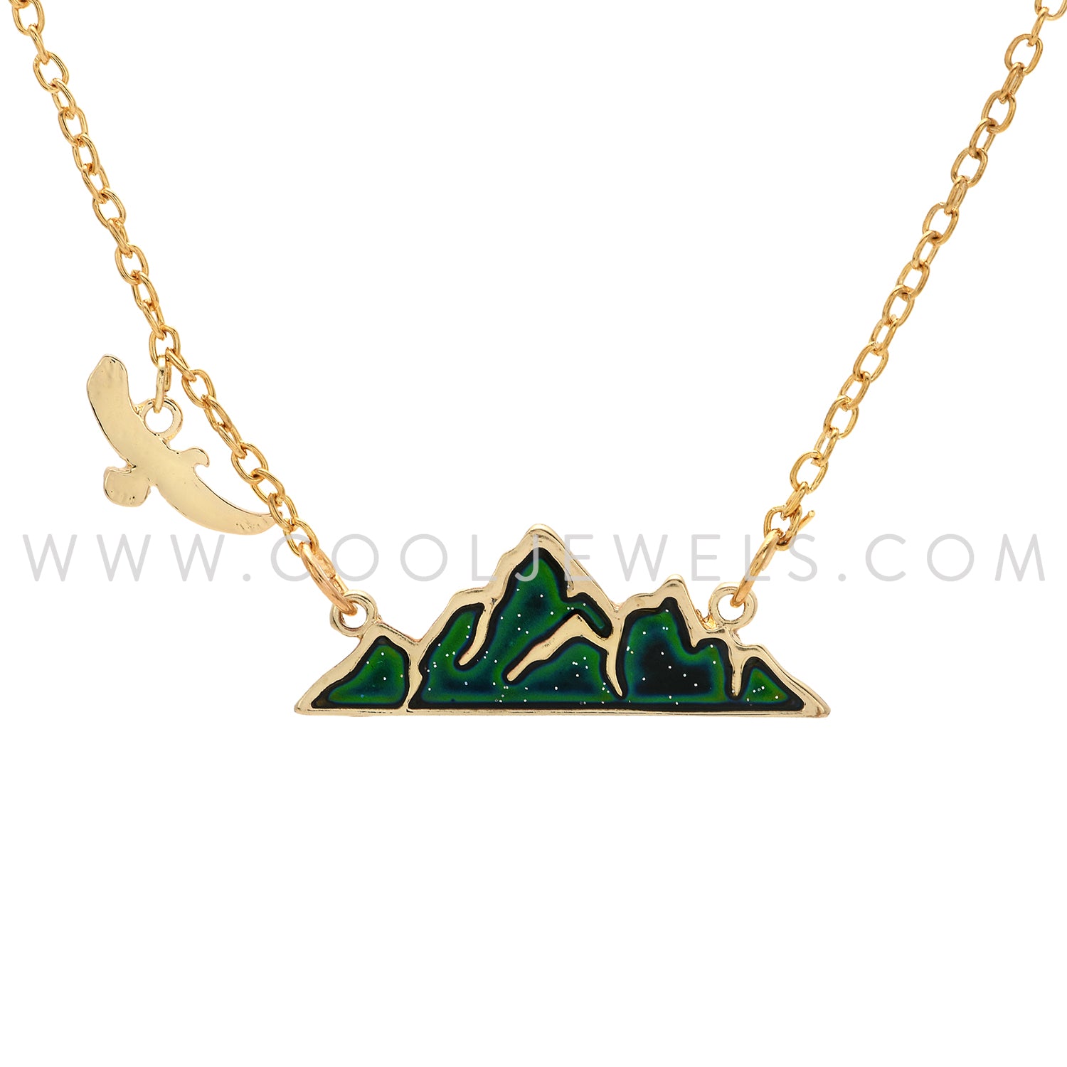 LINK CHAIN NECKLACE WITH MOOD MOUNTAIN & EAGLE PENDANT