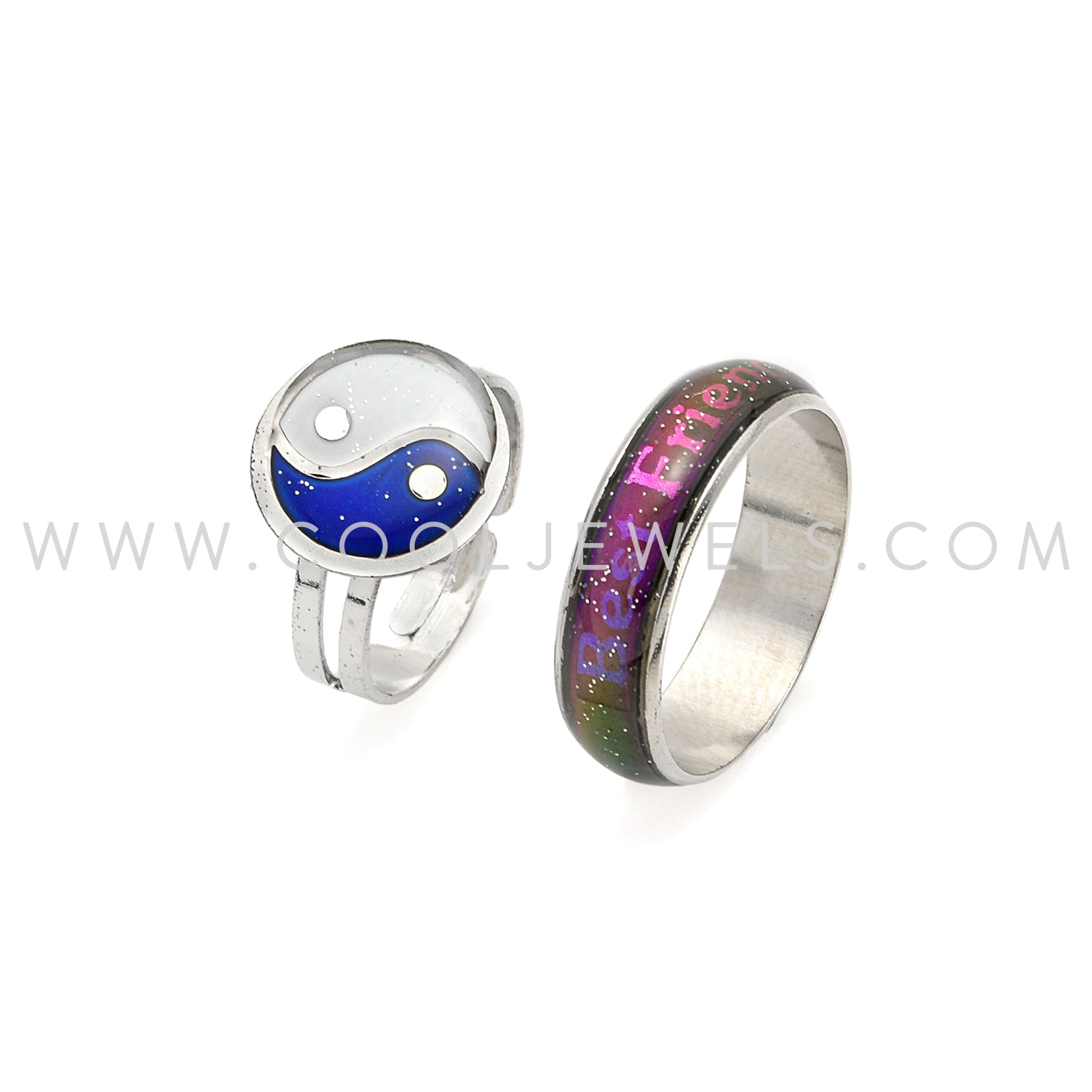 (SET OF 2) MOOD BEST FRIEND BAND & PEACE SIGN RING - CARDED