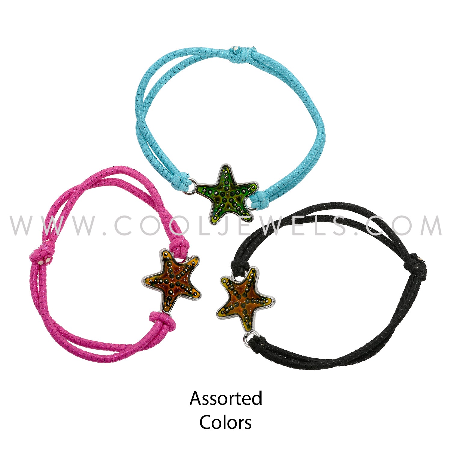 ELASTIC STRETCH BRACELET ANKLET WITH GLITTER MOOD STARFISH PENDANT - ASSORTED