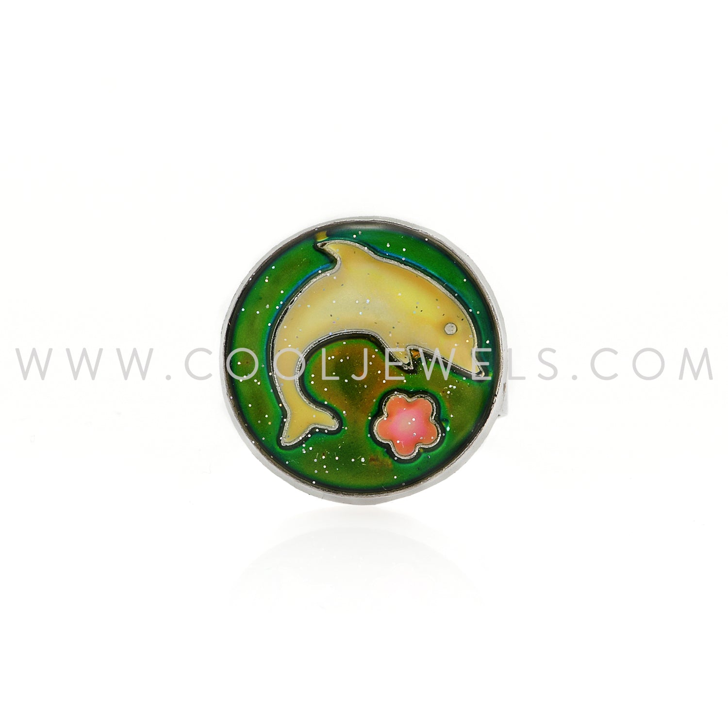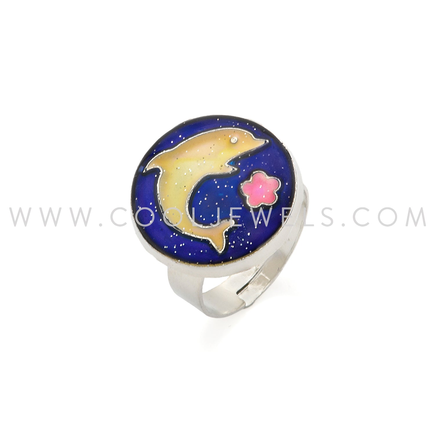 These UV and Mood Dolphin and Flower Rings feature a UV active (pink & blue in each dozen) dolphin, flower, and mood-changing background pendant on a silver band.