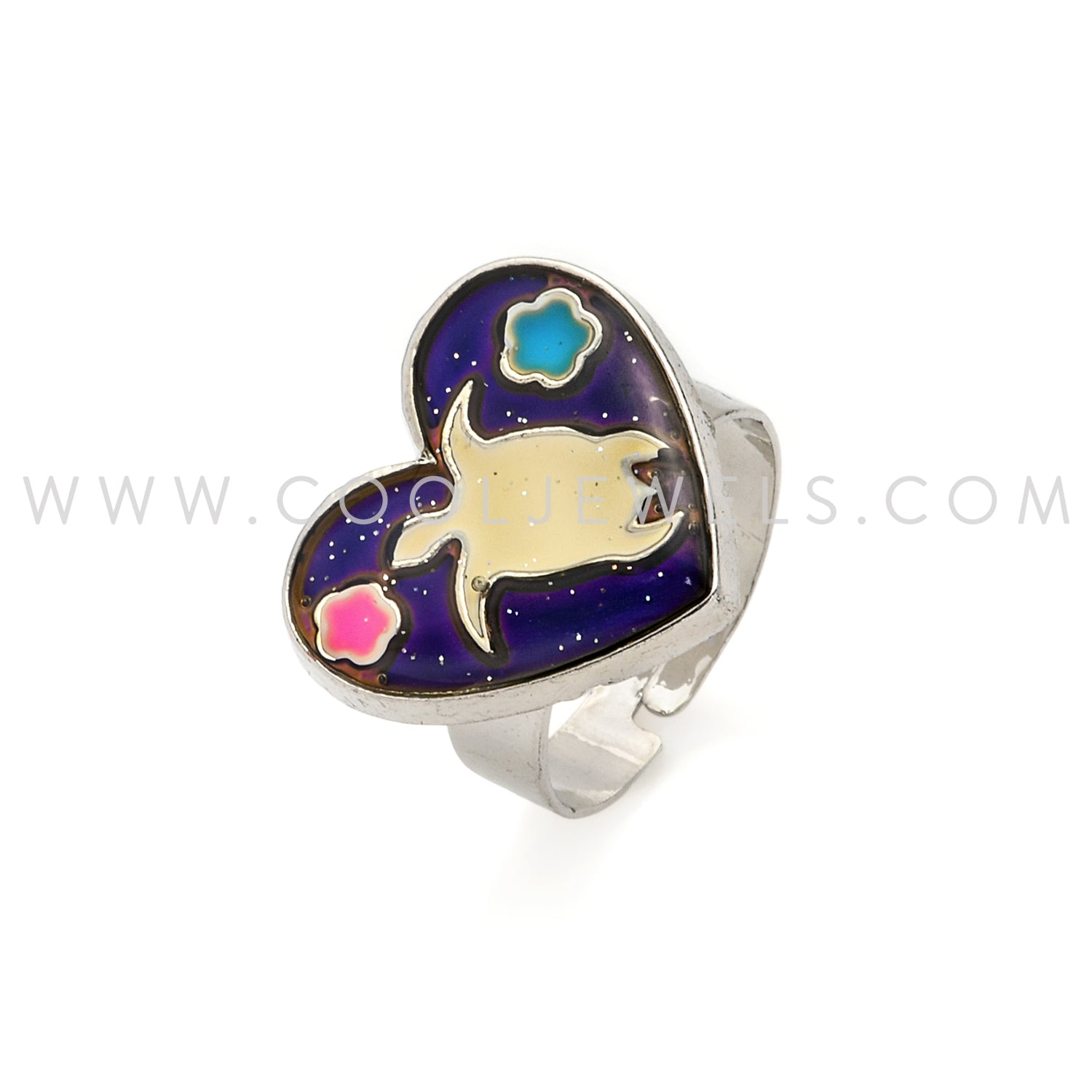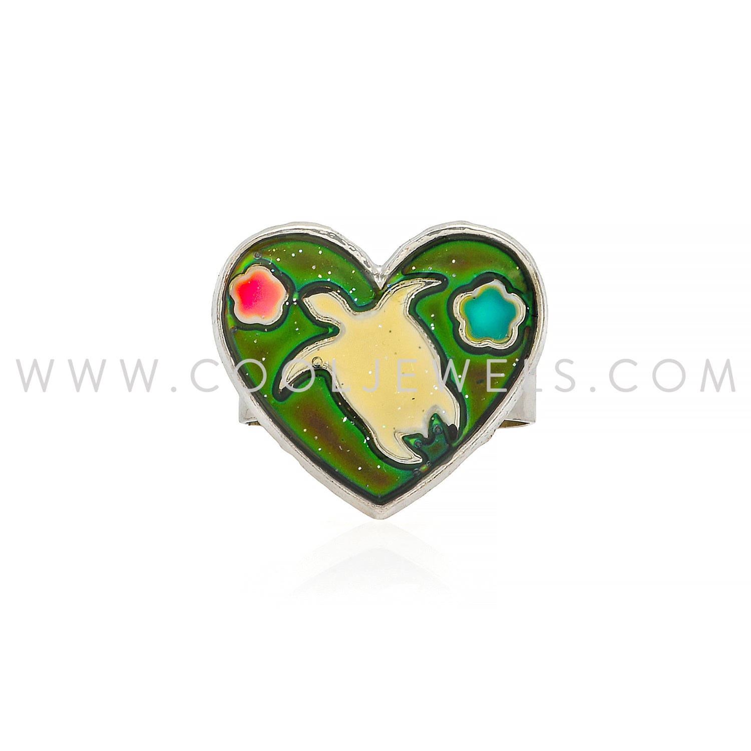 These UV and Mood Turtle Rings feature a silver band with a UV Active and Mood heart shaped turtle pendant ring.