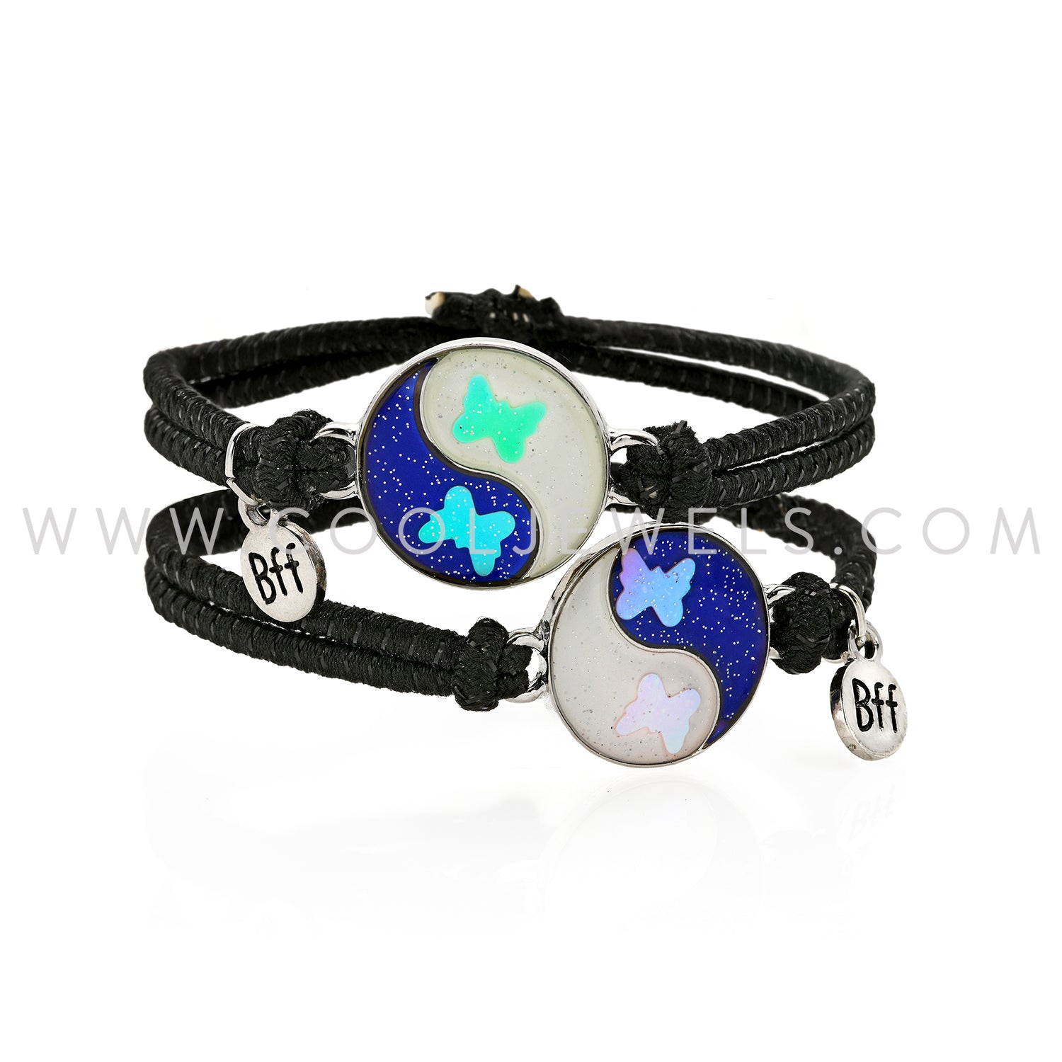 (SET OF 2) BLACK STRETCH BRACELET WITH GLITTER MOOD YIN YANG & BFF CHARM - CARDED