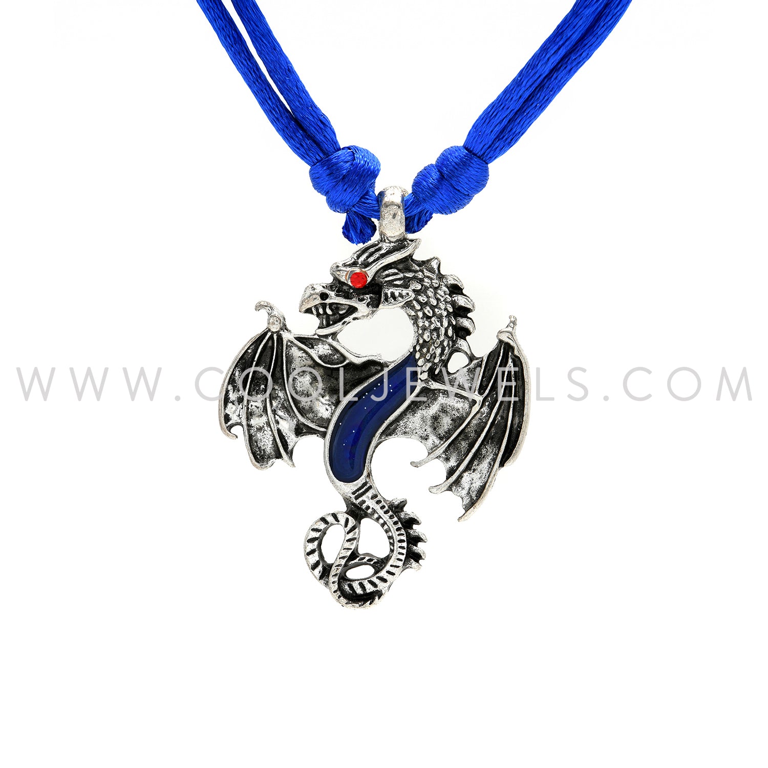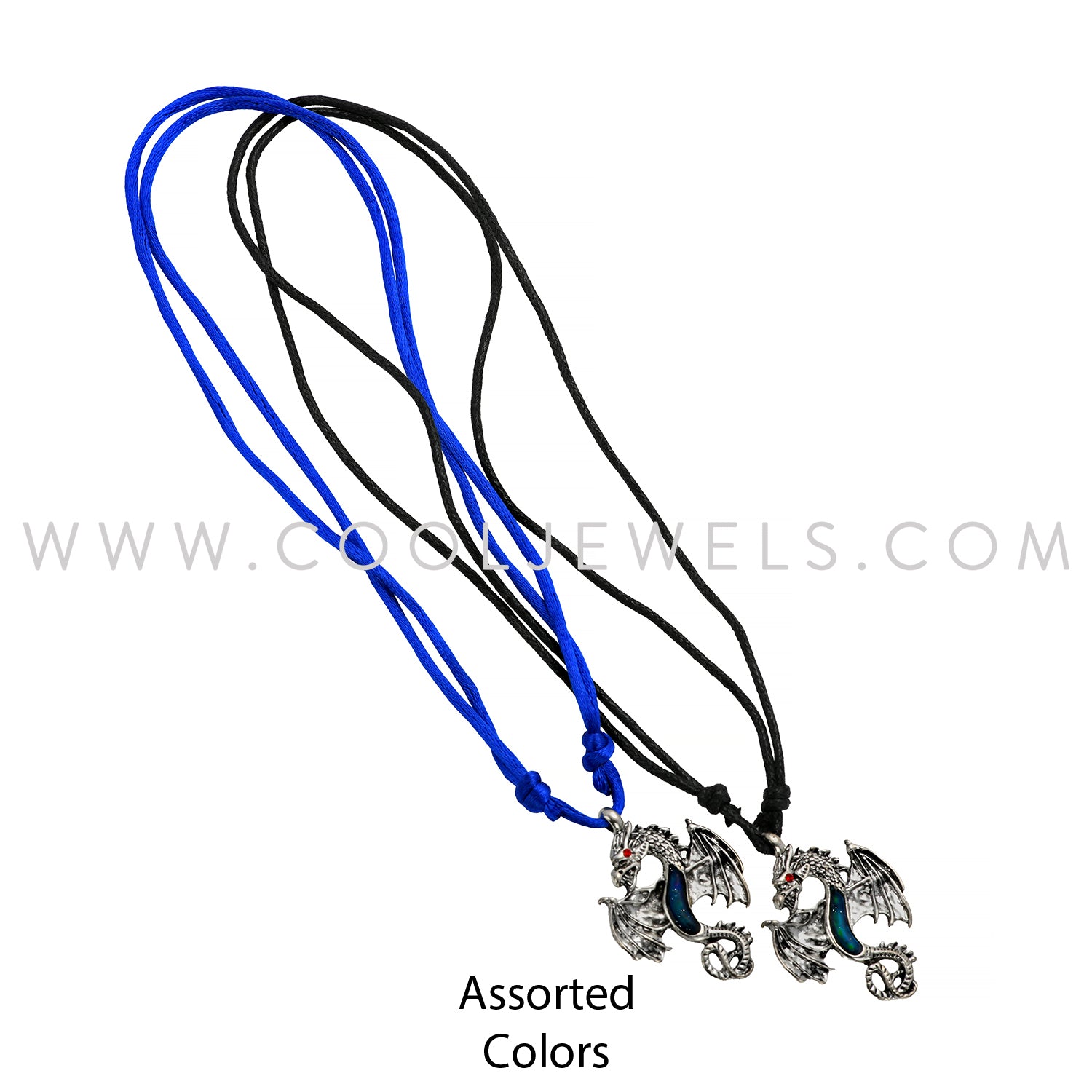 This Dragon Mood Necklace comes on a 28" black slider cord necklace and features a Silver Pewter Dragon with a MOOD Chest and rhinestone eyes.