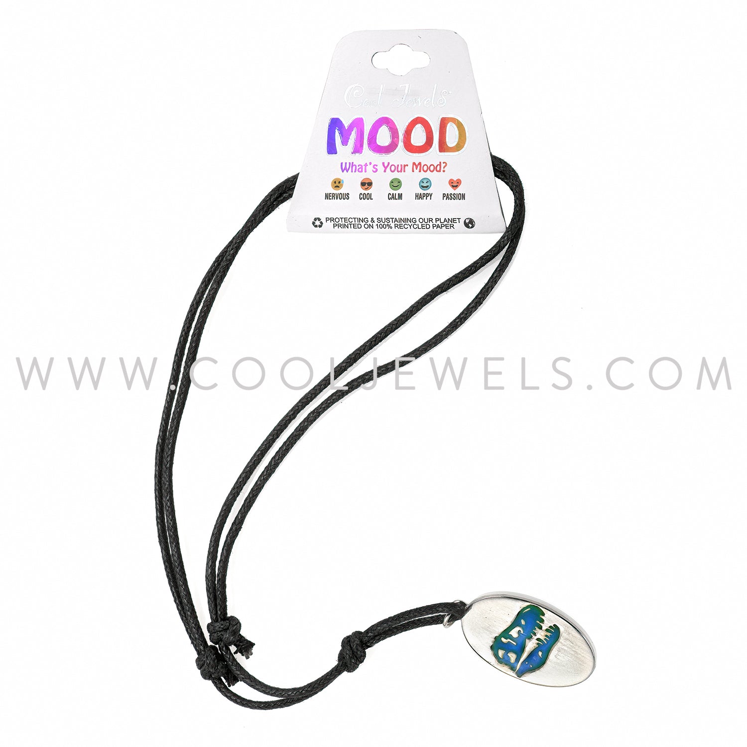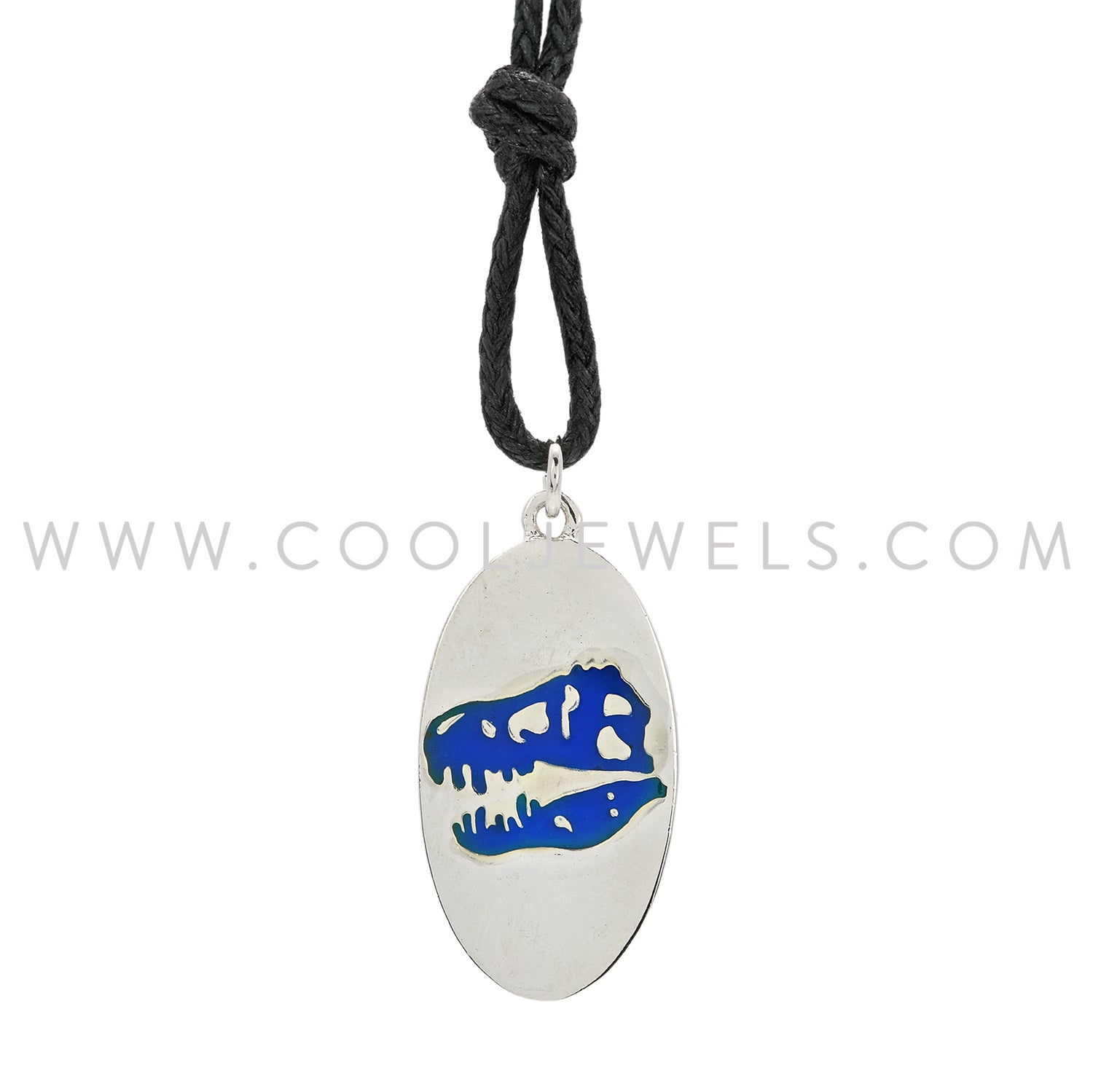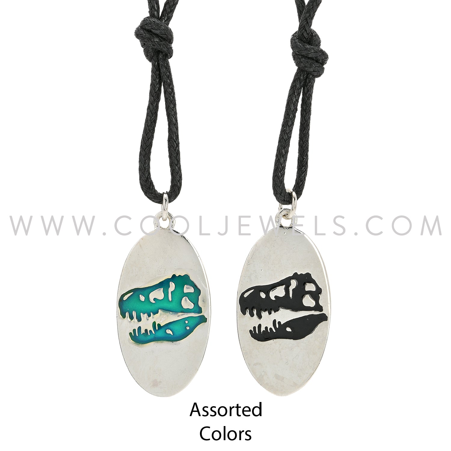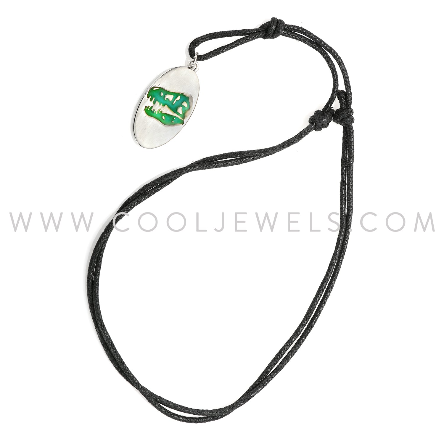 From our Dinosaur Jewelry Category this mood silver dinosaur head necklace by Cool Jewels ® comes on a black adjustable cord with silver and mood pendant, that will change color with your mood. For more information, or to see the rest of our dinosaur jewelry collection, type dinosaur into the white search box on the left side of your screen.