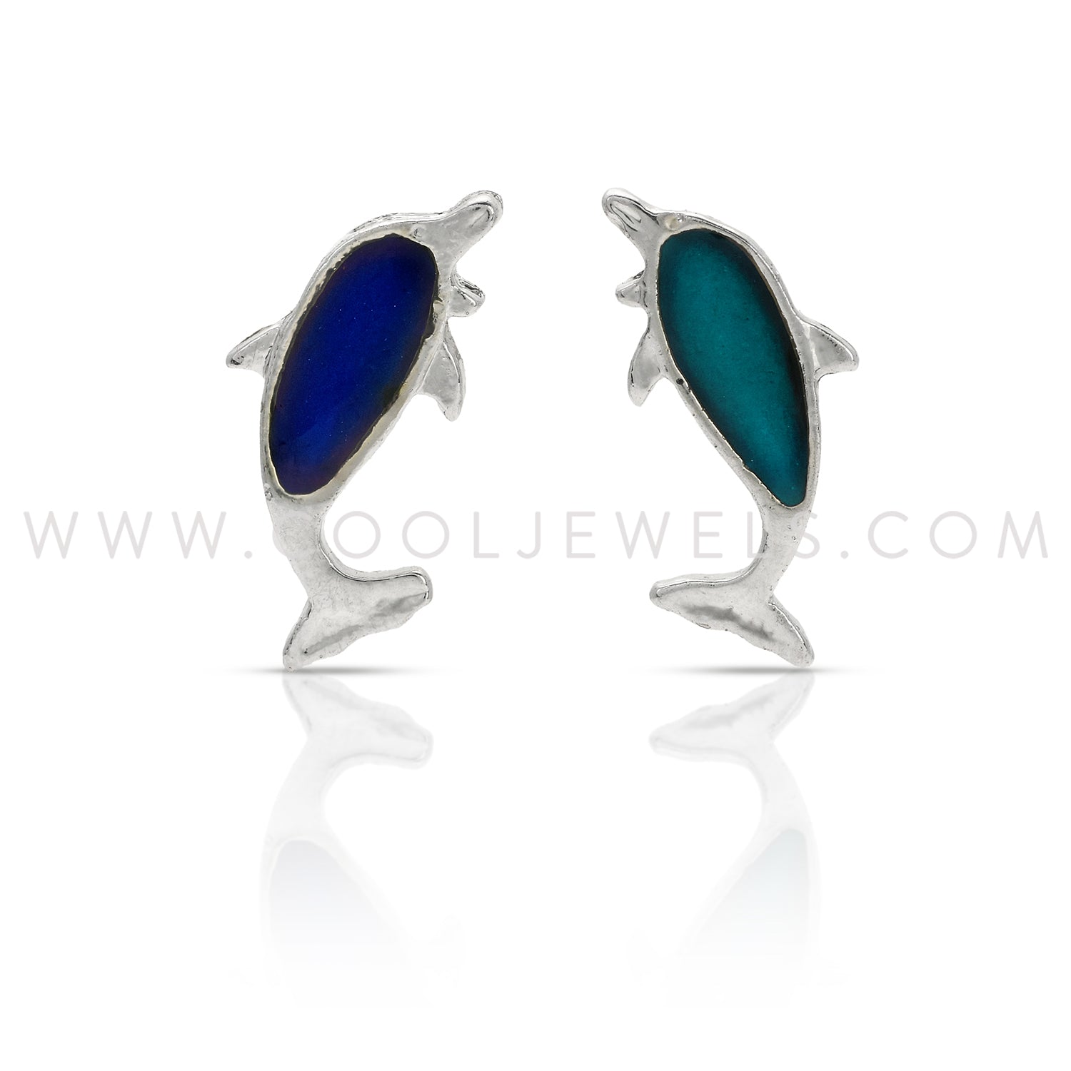 These Mood Dolphin Earrings feature post earrings with mood dolphin pendants.