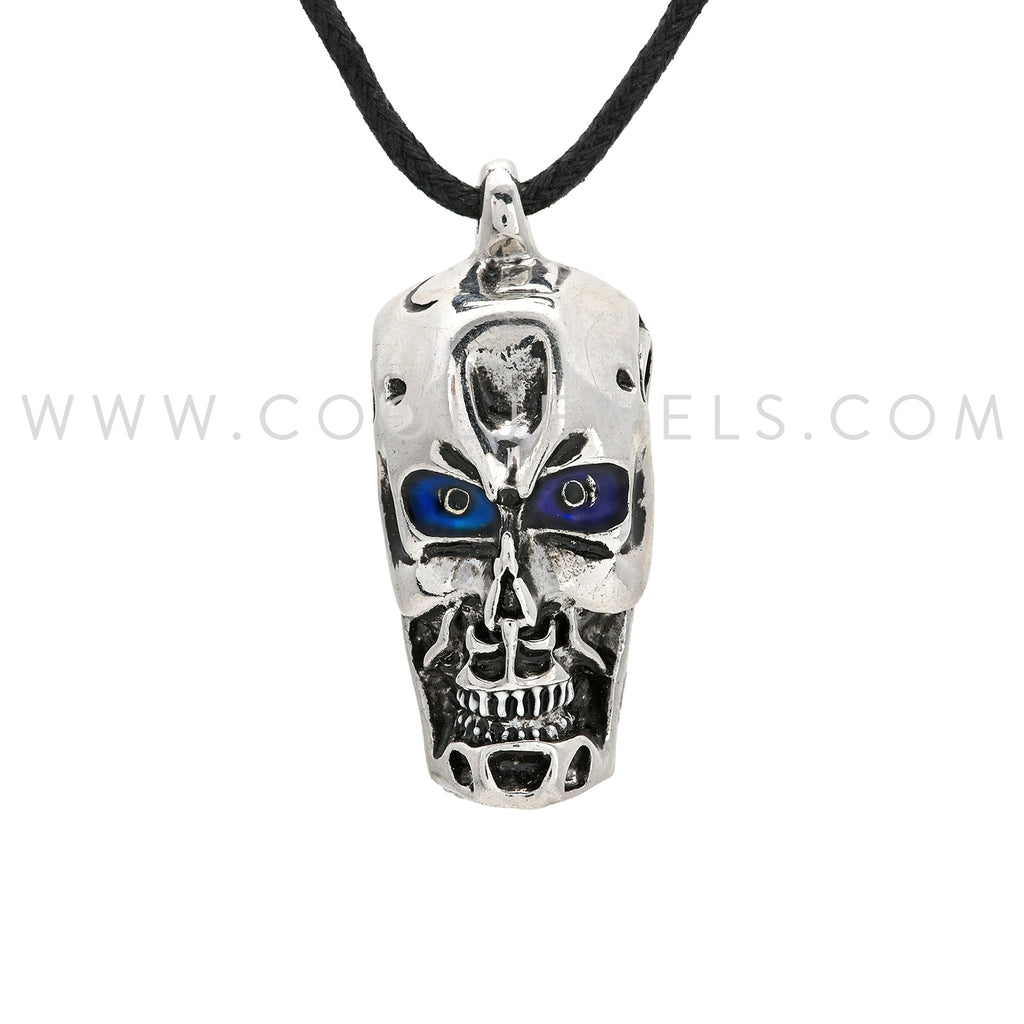 This MOOD Skull Necklace features a skull with MOOD eyes and comes on a 28" black slider cord.