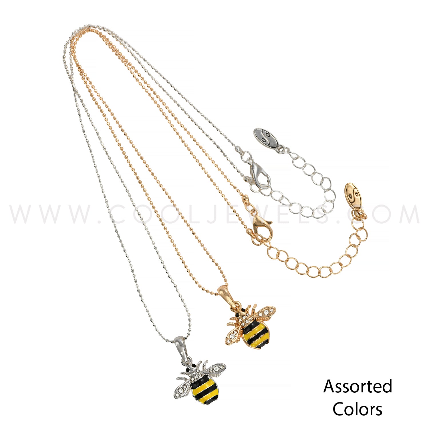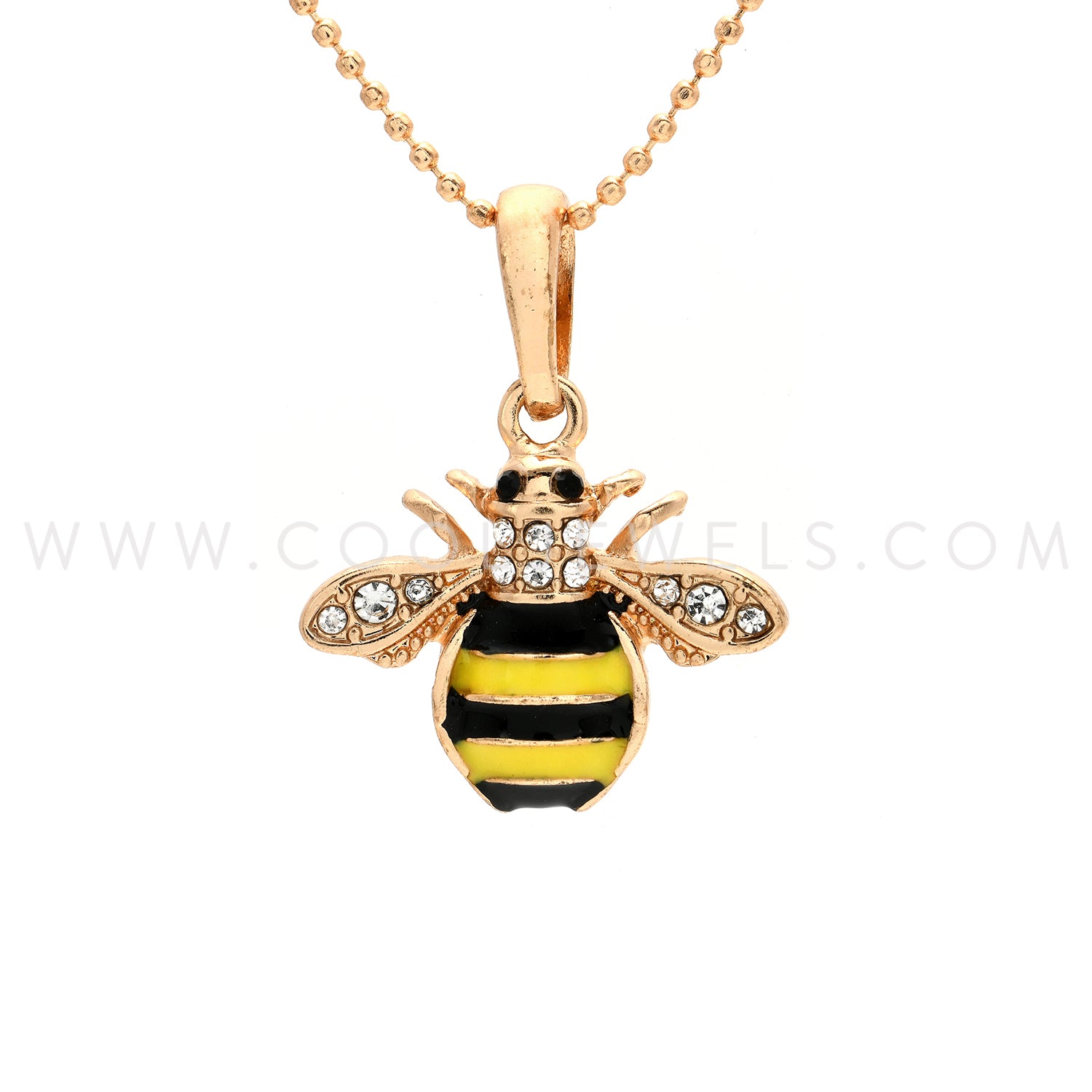Ball chain Necklace with Black and Yellow Bee Pendant