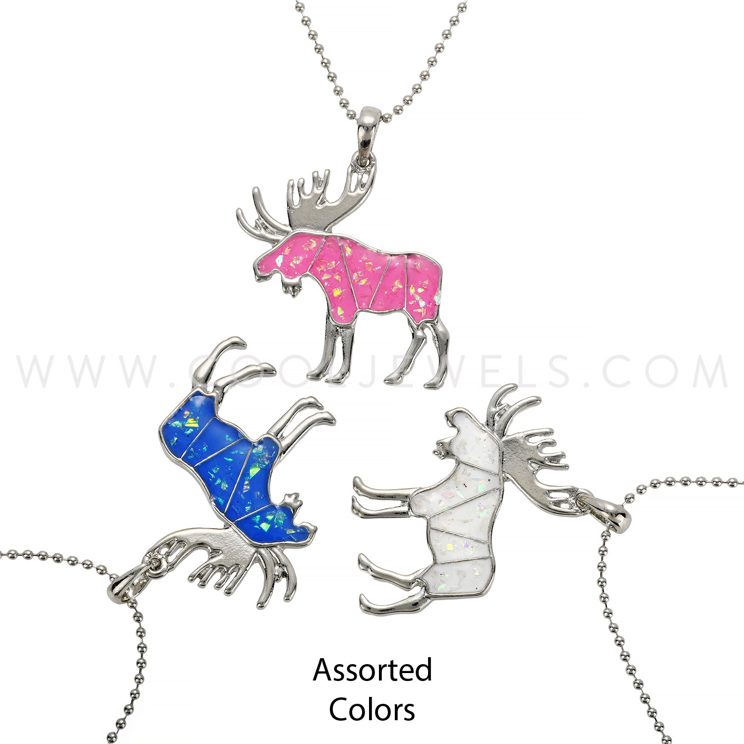 BALL CHAIN NECKLACE WITH MOOSE PENDANT - ASSORTED