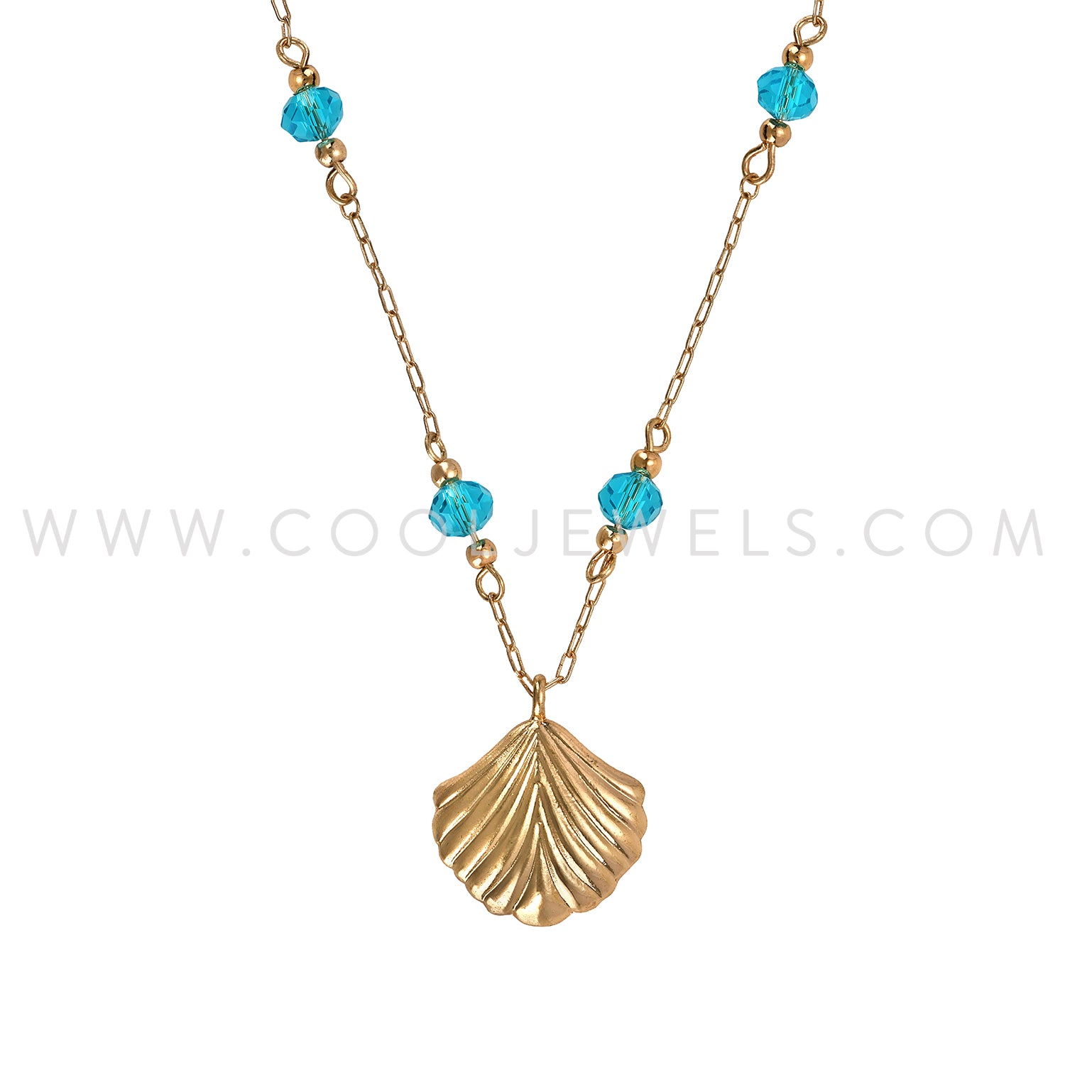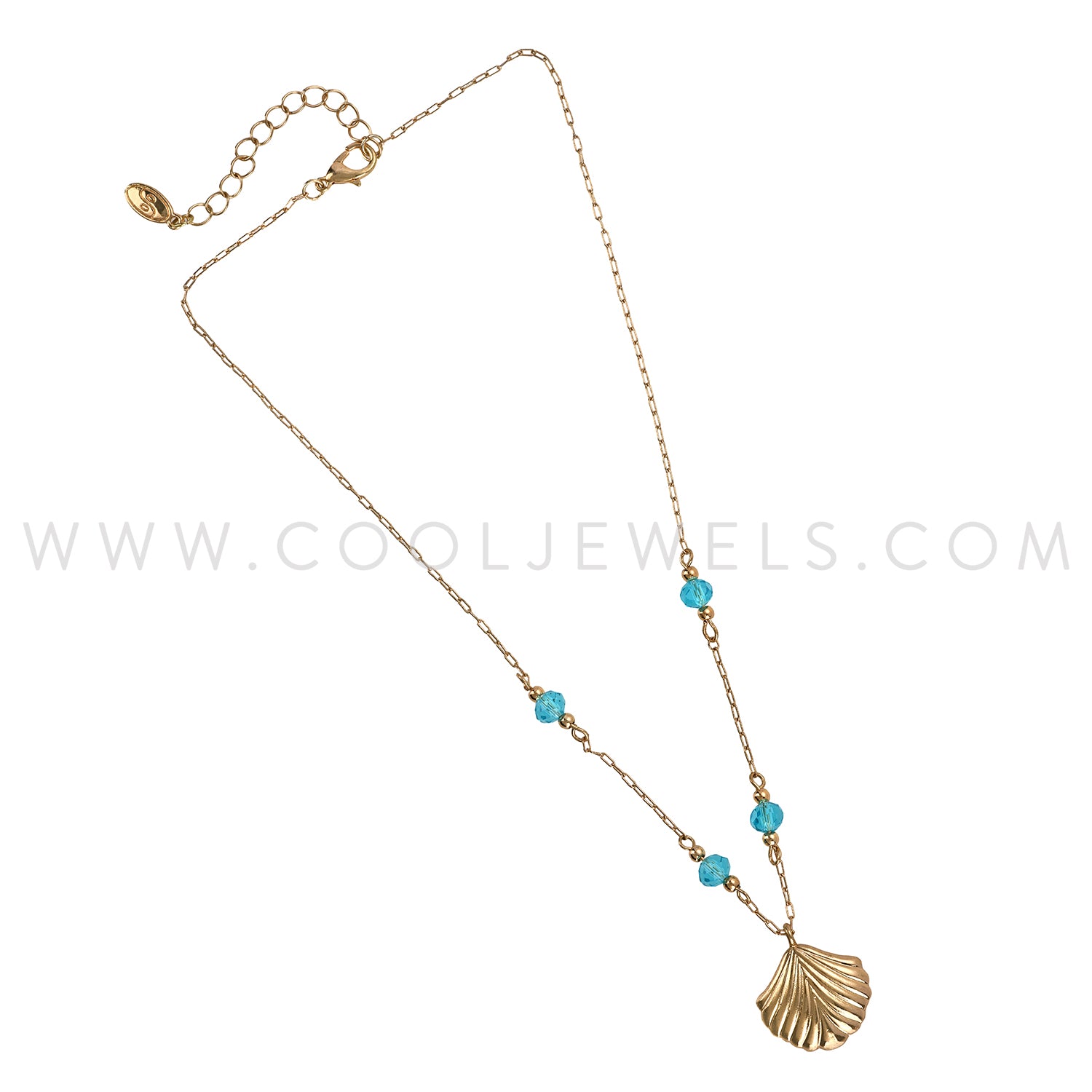 LINK CHAIN NECKLACE WITH BEADS & SEASHELL PENDANT - ASSORTED
