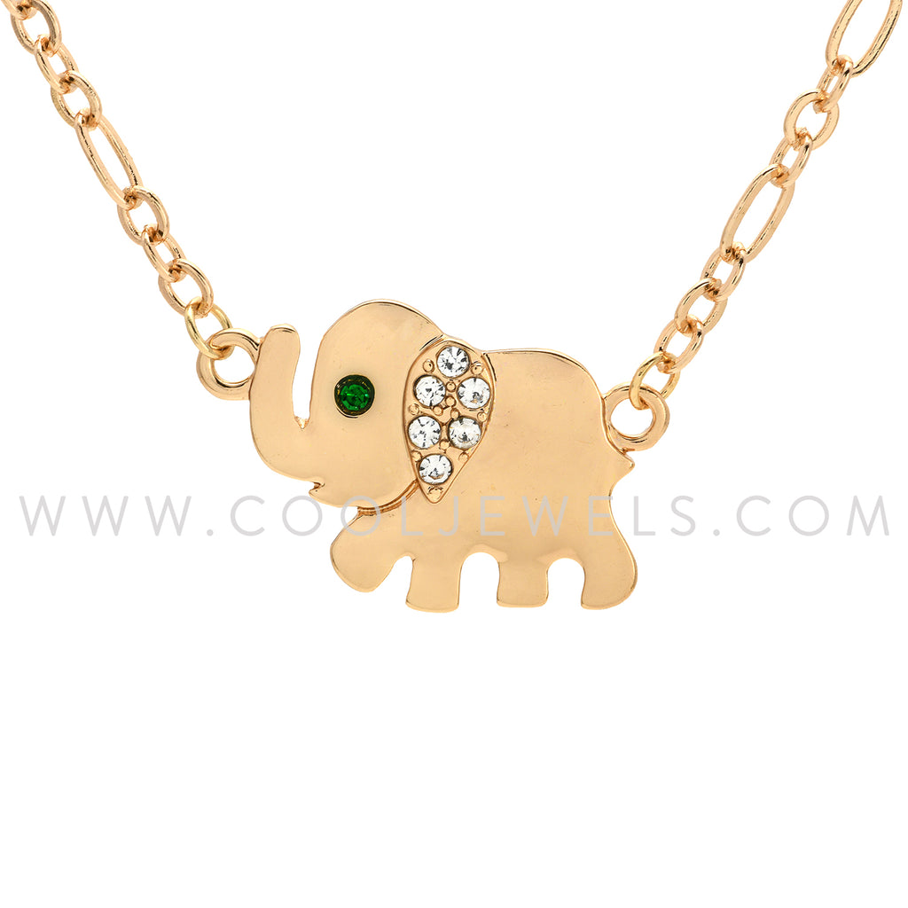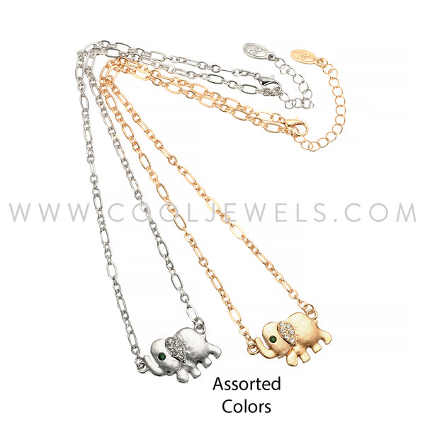 LINK CHAIN NECKLACE WITH RHINESTONE ELEPHANT PENDANT - ASSORTED