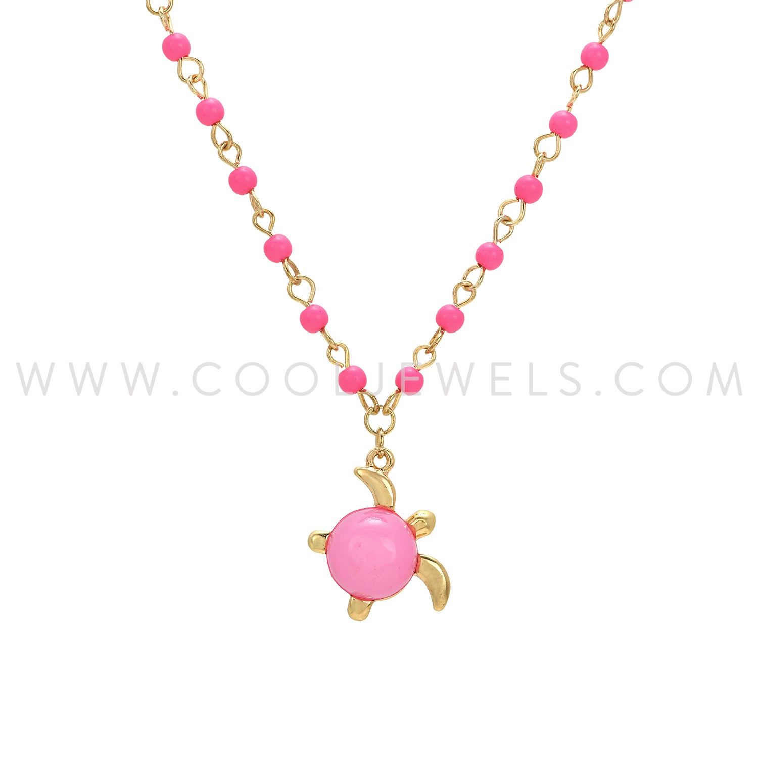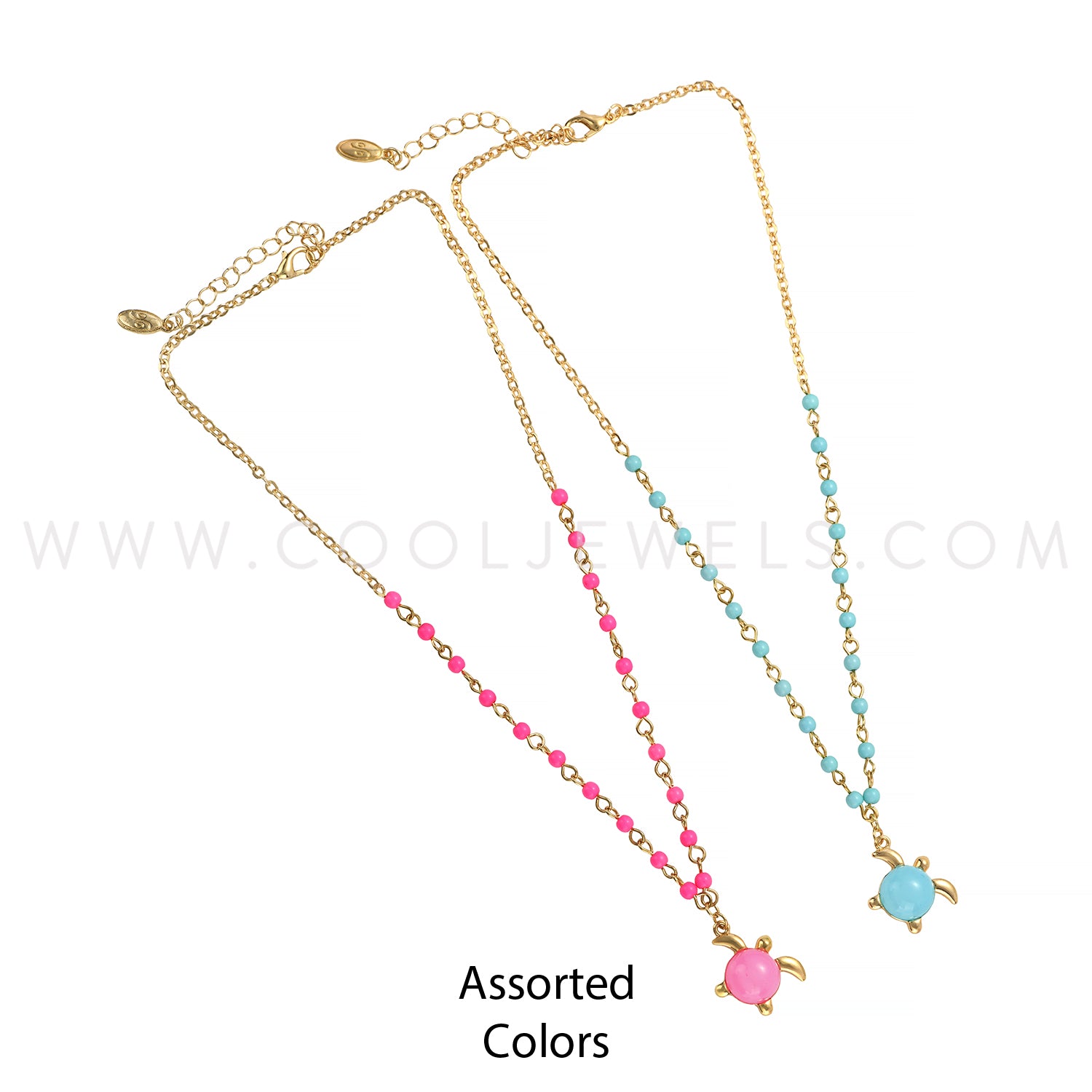 CHAIN NECKLACE WITH COLORED BEADS & TURTLE PENDANT - ASSORTED
