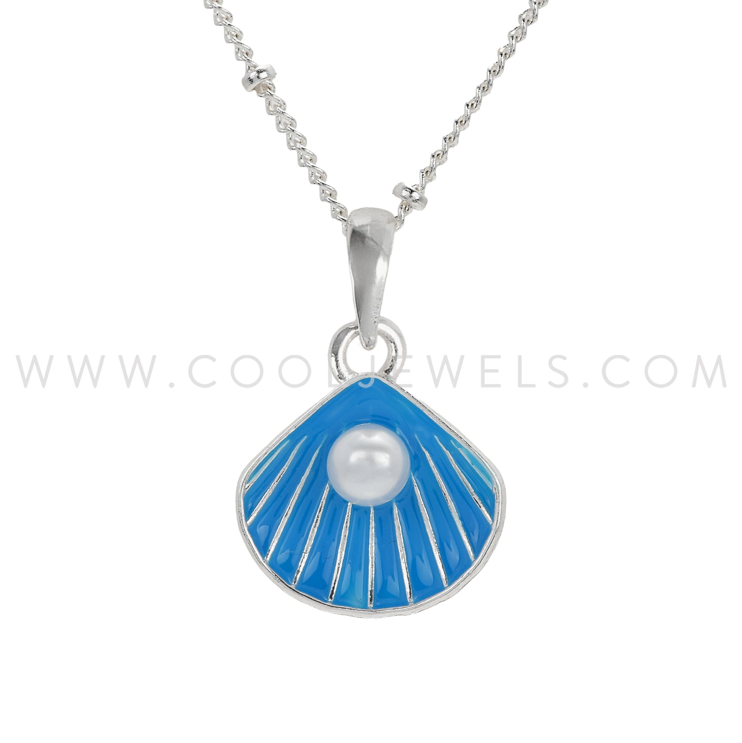 CHAIN NECKLACE WITH SHELL PENDANT & PEARL BEAD - ASSORTED
