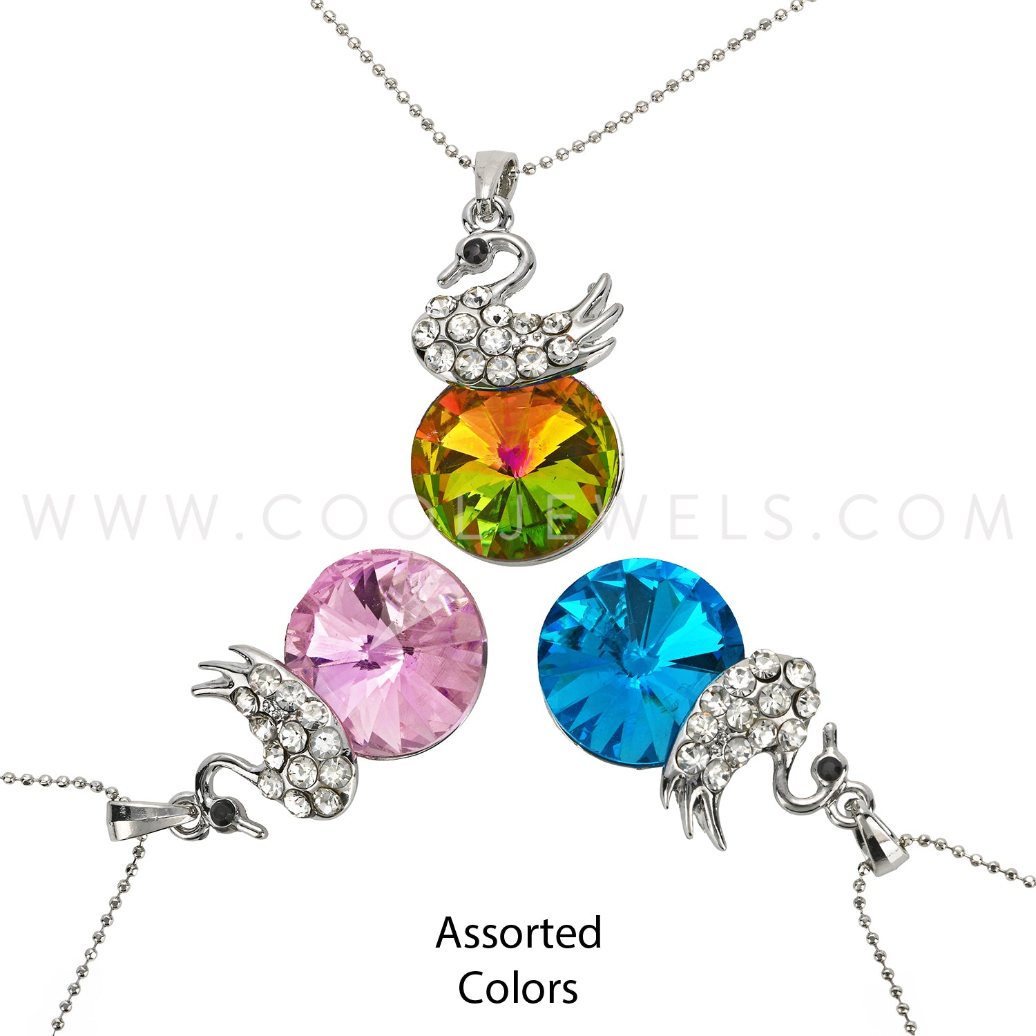 These Crystal Rhinestone Swan Necklaces feature a silver ball chain with a crystal and rhinestone swan pendant.