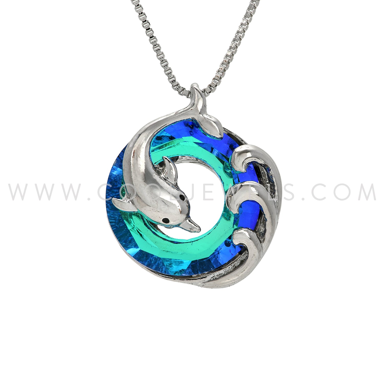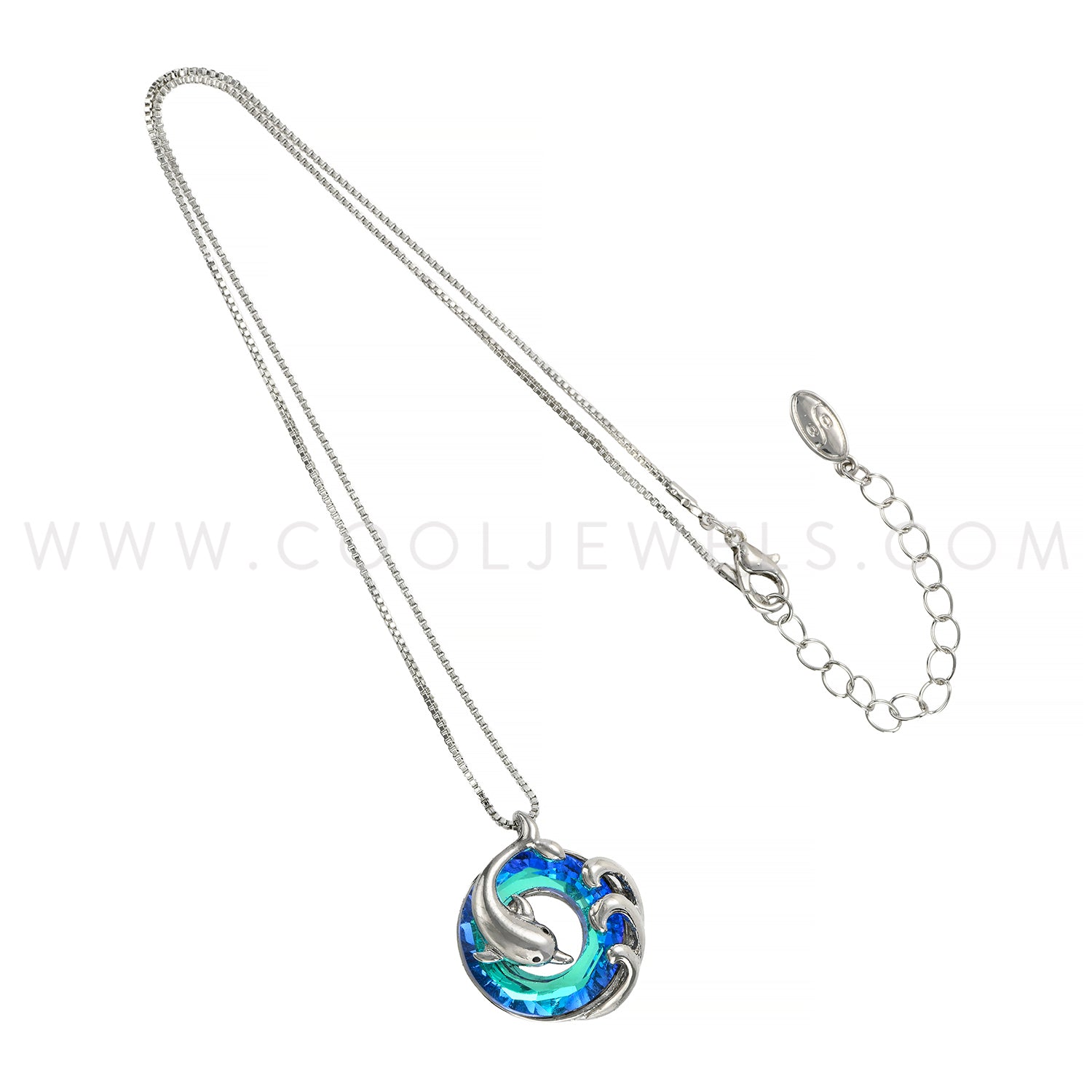 BOX CHAIN NECKLACE WITH CRYSTAL DOLPHIN PENDANT