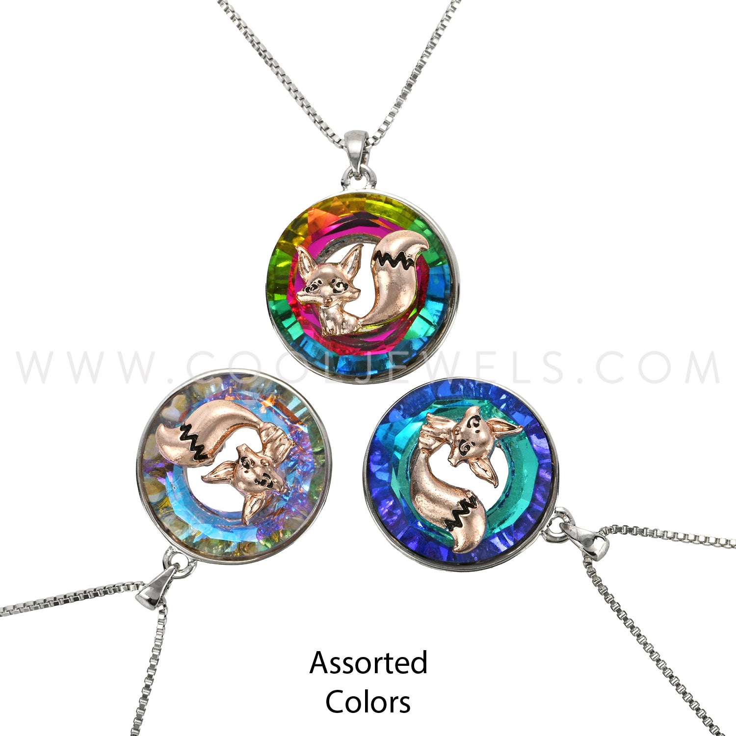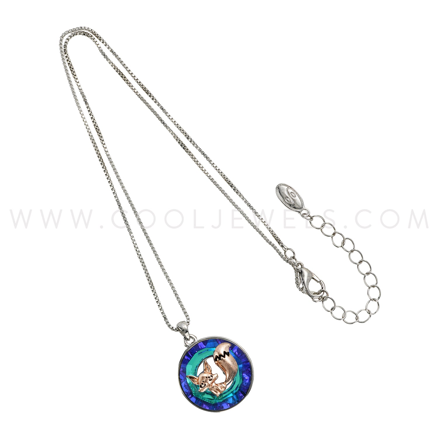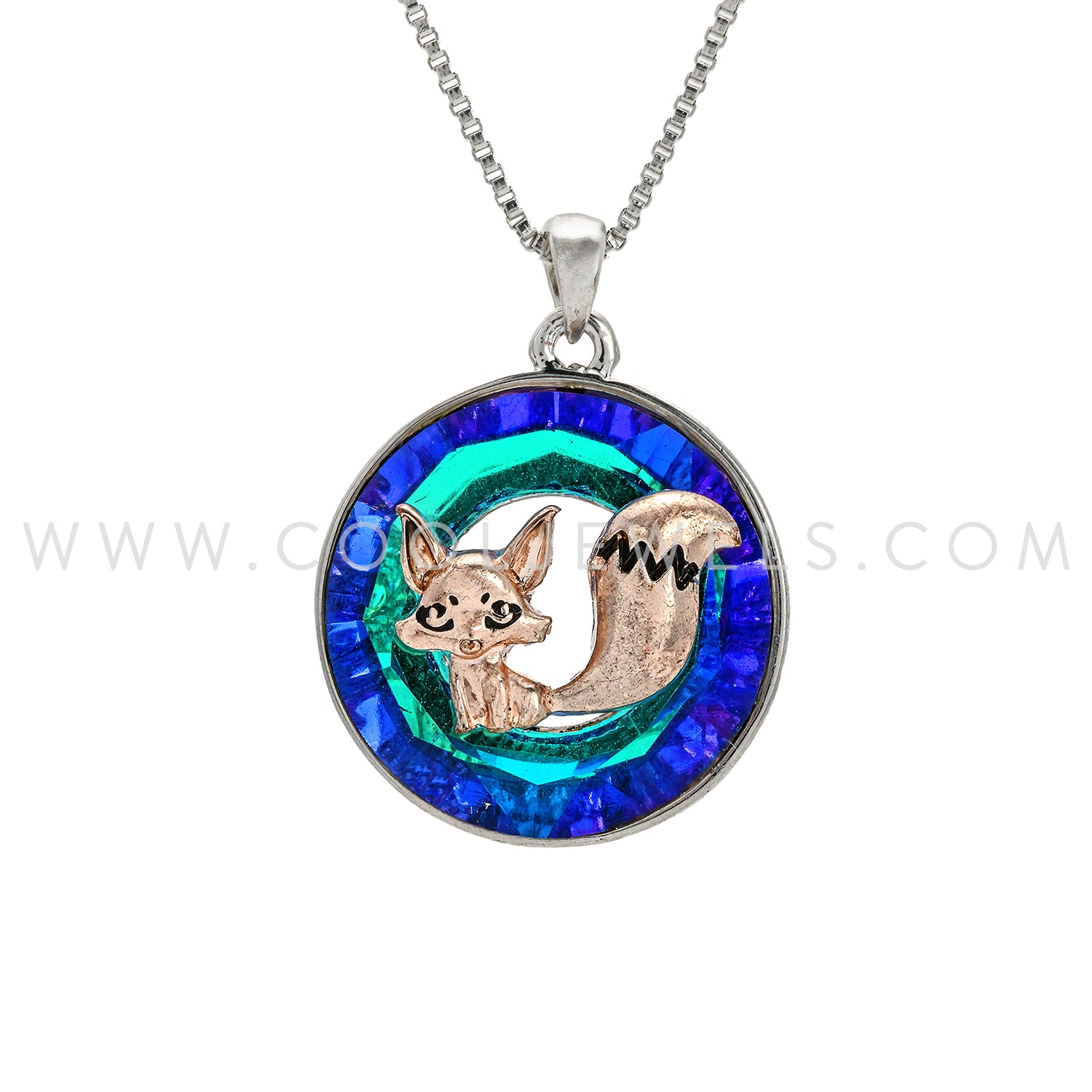 BOX CHAIN NECKLACE WITH CRYSTAL FOX PENDANT