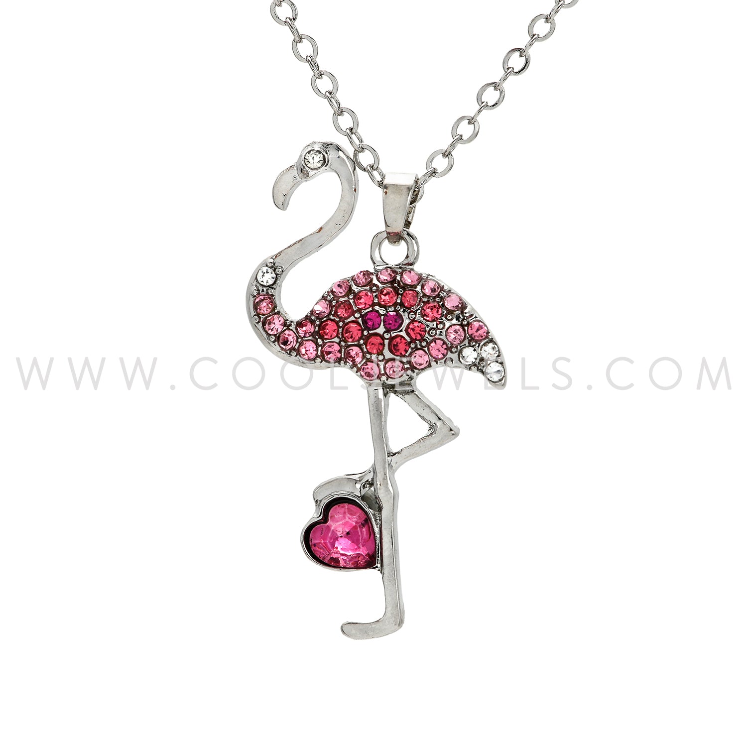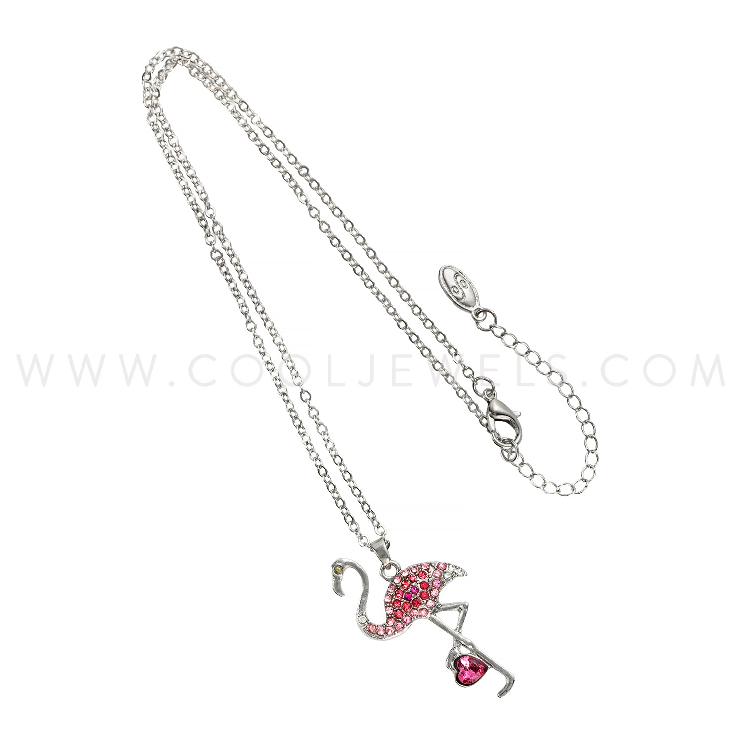 LINK CHAIN NECKLACE WITH PINK RHINESTONE FLAMINGO PENDANT