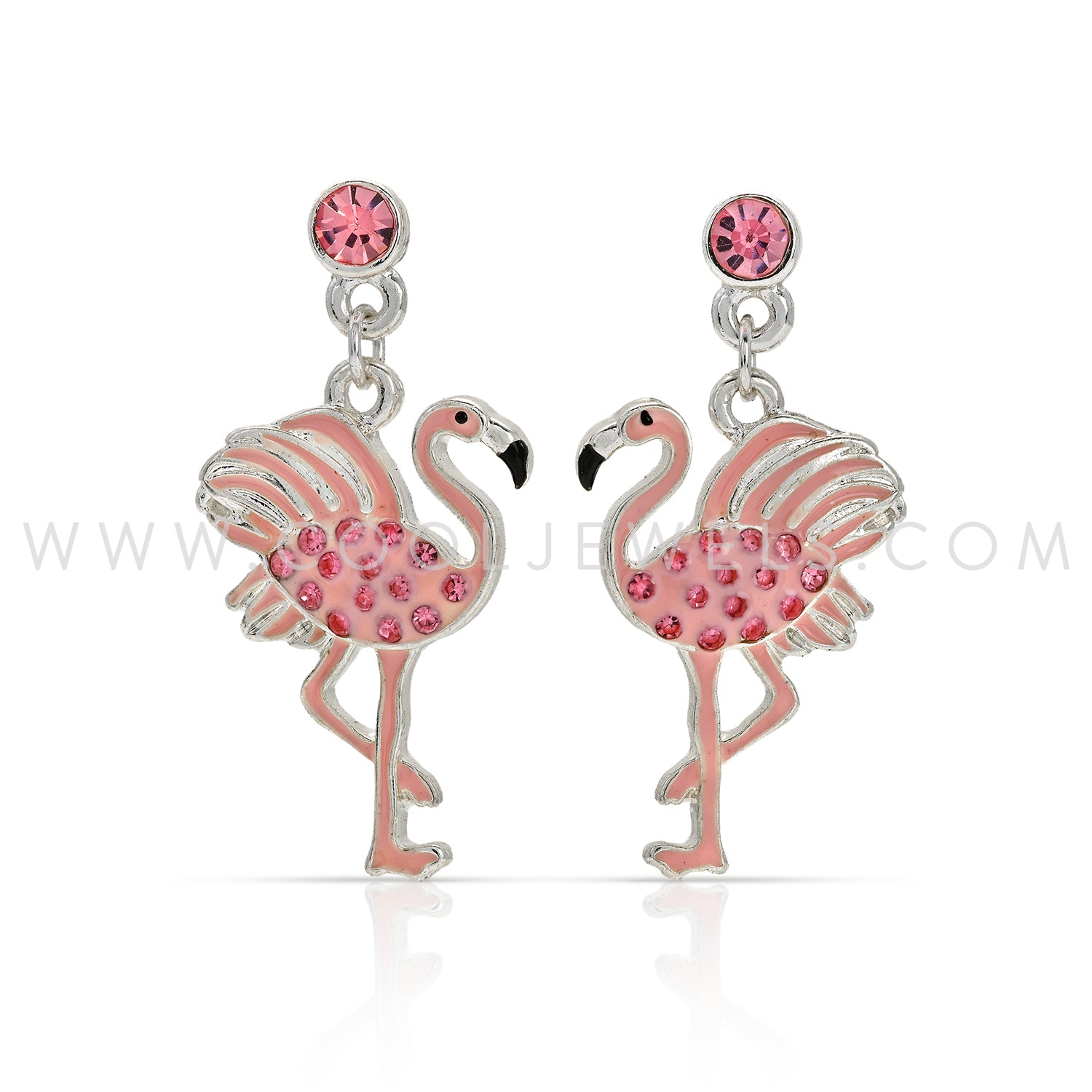 These Pink Flamingo Rhinestone Earrings feature a pink flamingo with pink rhinestones on a pink rhinestone stud earring.