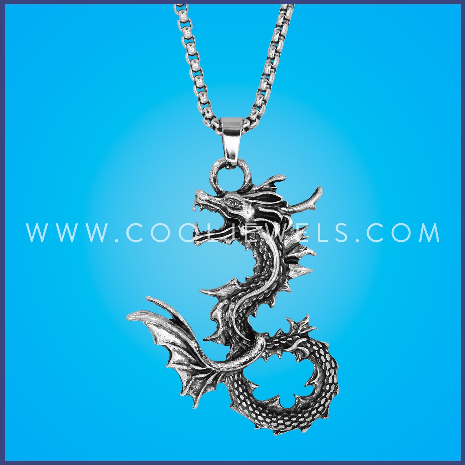 BOX CHAIN LINK NECKLACE WITH DRAGON PENDANT