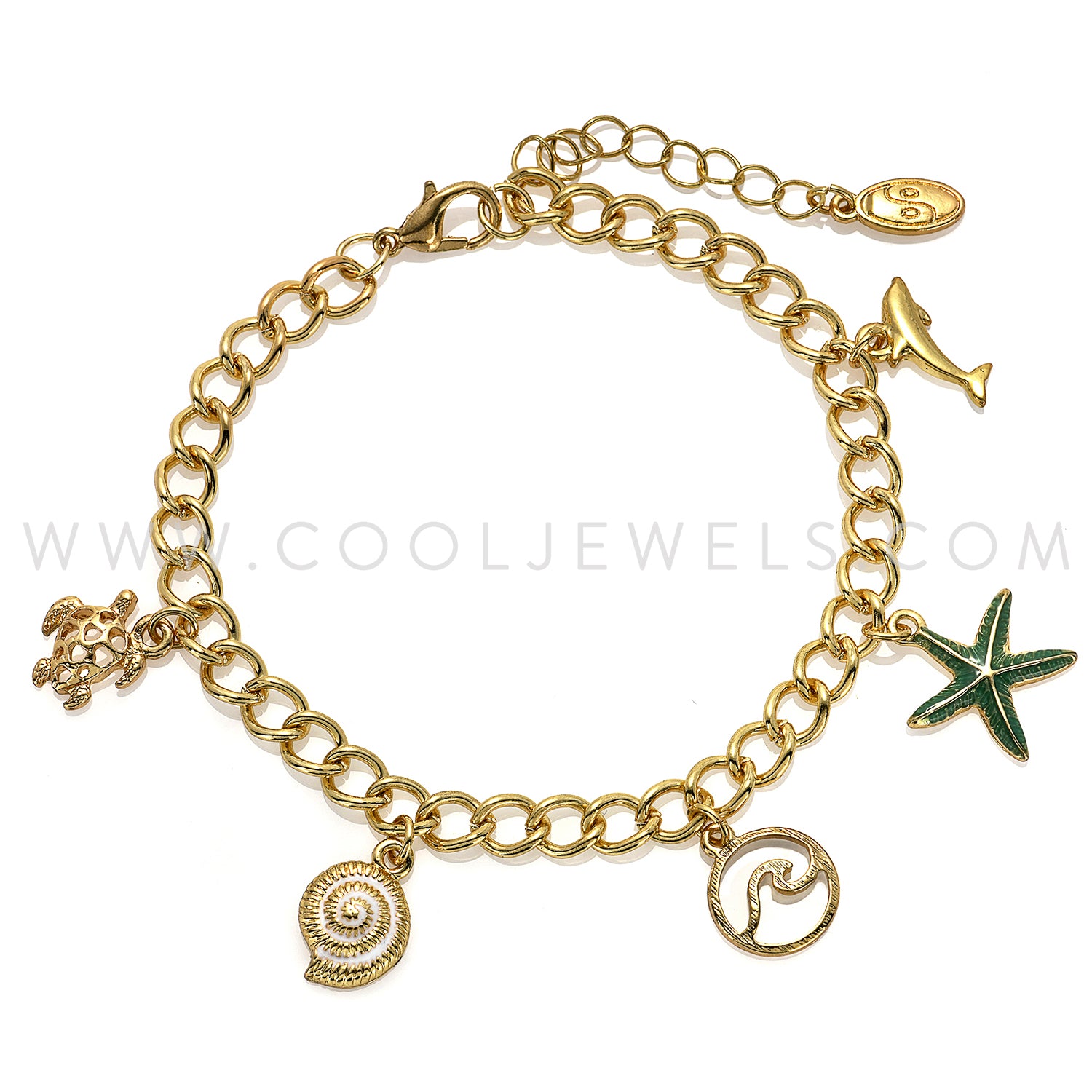 GOLD CHAIN BRACELET WITH SEALIFE CHARMS