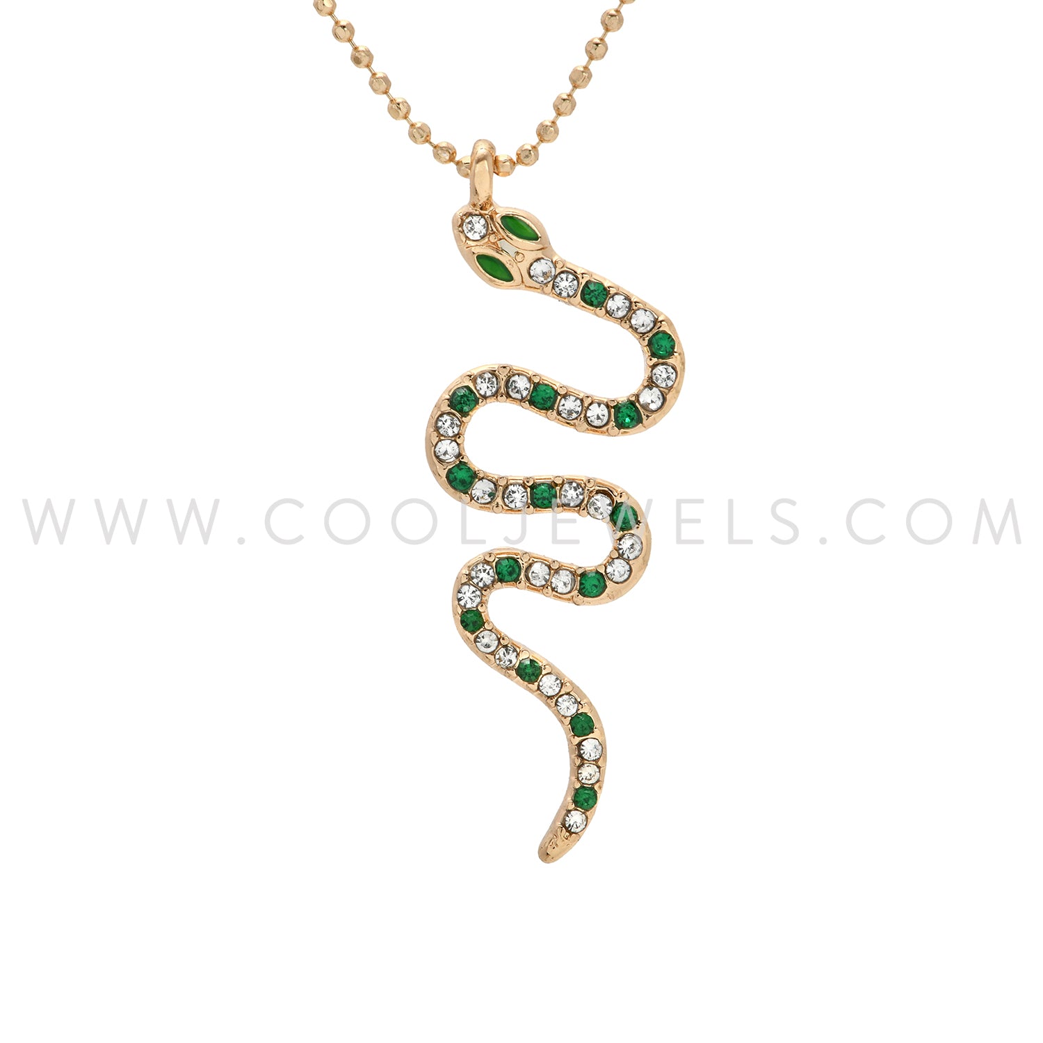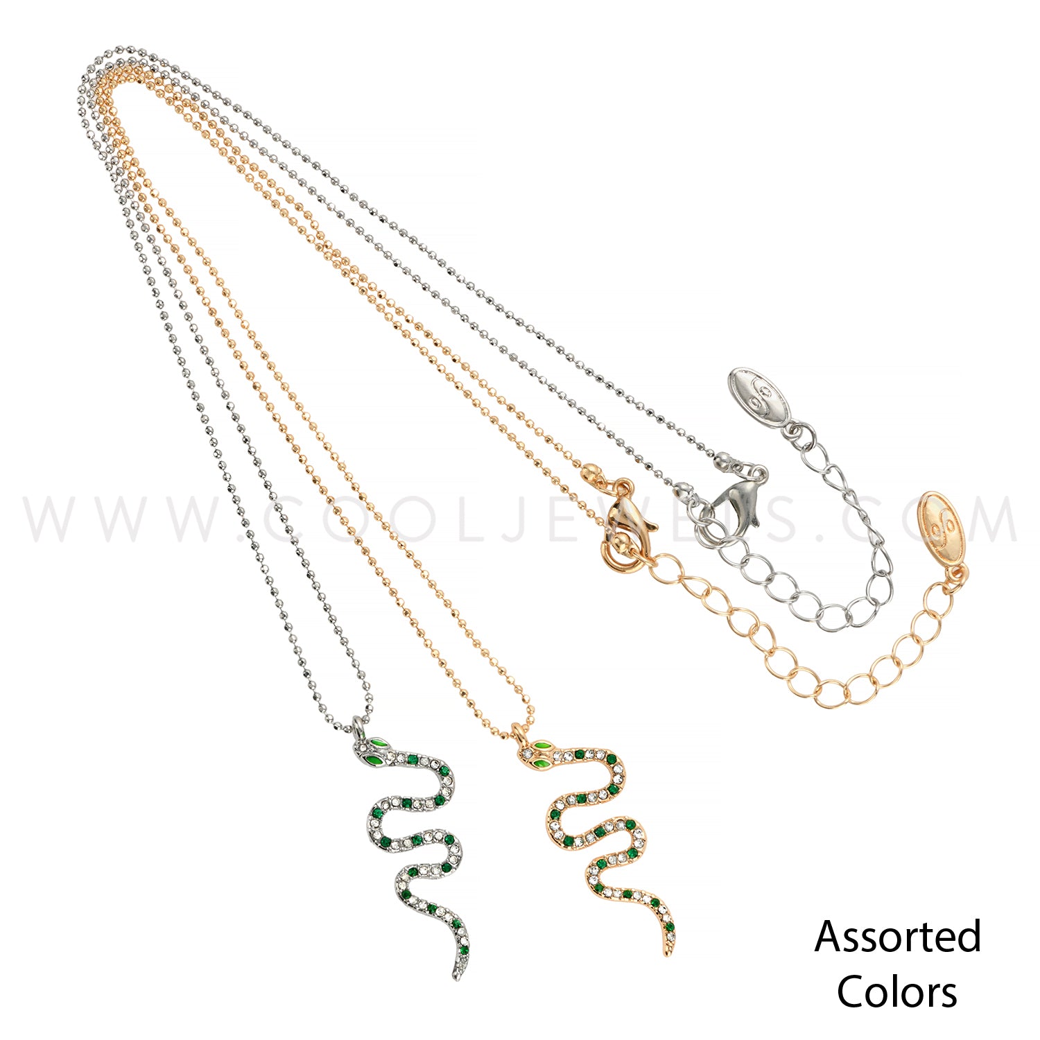 DC BALL CHAIN NECKLACE WITH RHINESTONE SNAKE PENDANT - ASSORTMENT