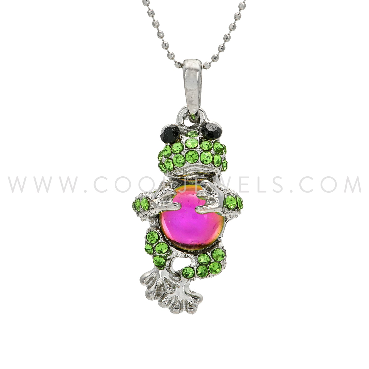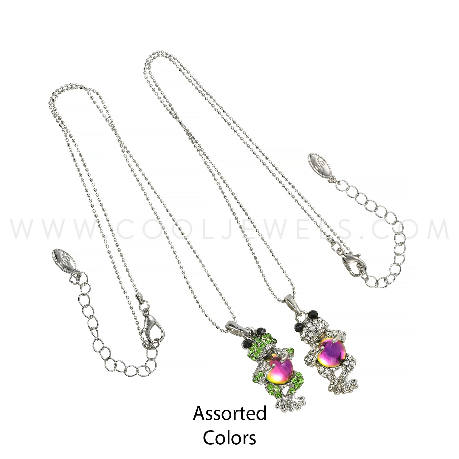 SILVER BALL CHAIN NECKLACES WITH RHINESTONE & CRYSTAL BEAD FROG