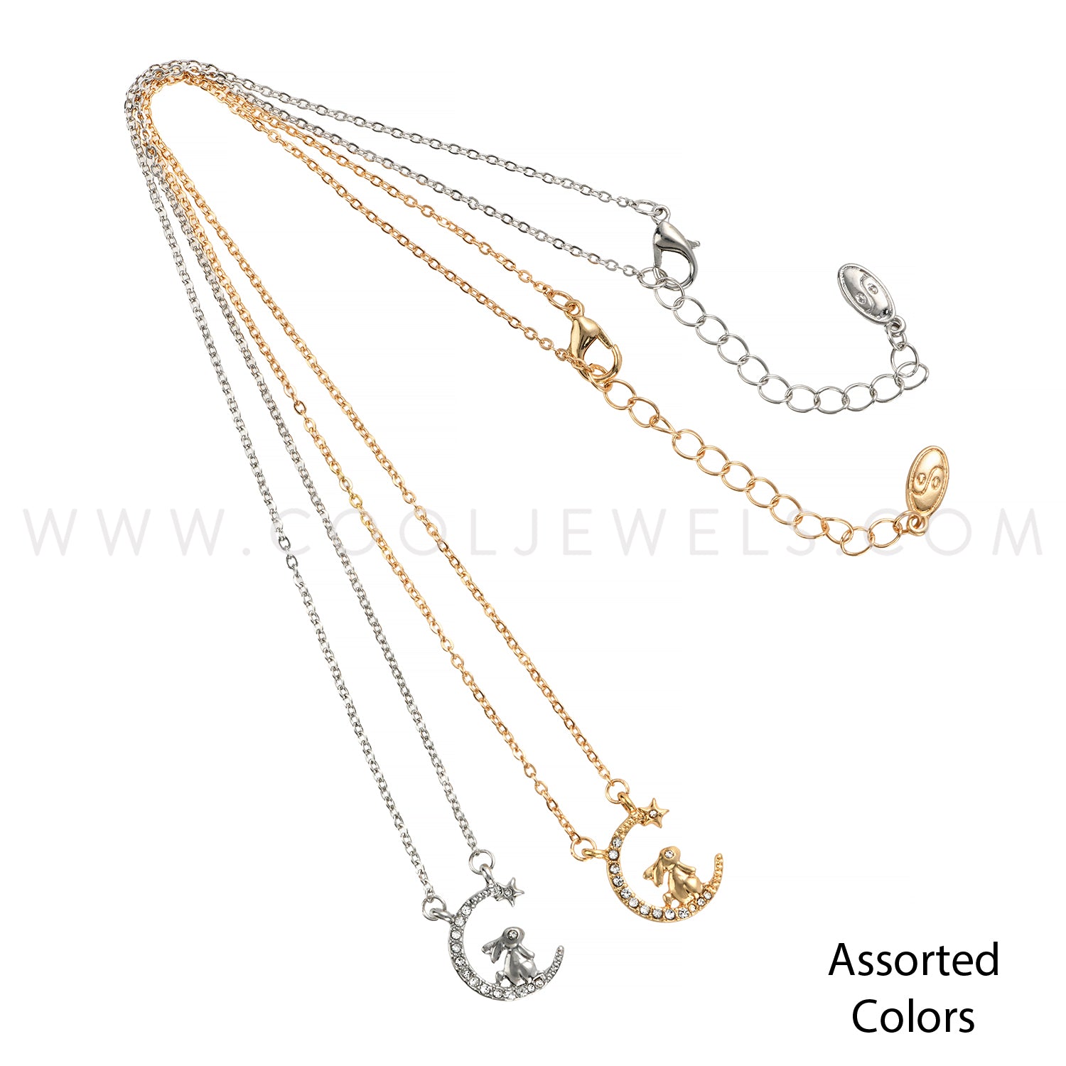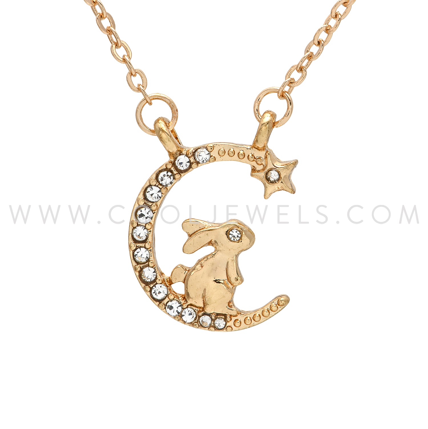 LINK CHAIN NECKLACE WITH RHINESTONE MOON/STAR & RABBIT PENDANT - ASSORTED
