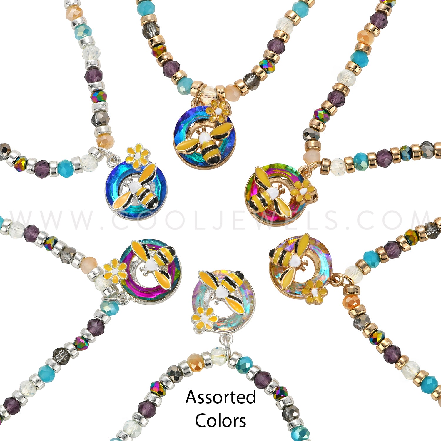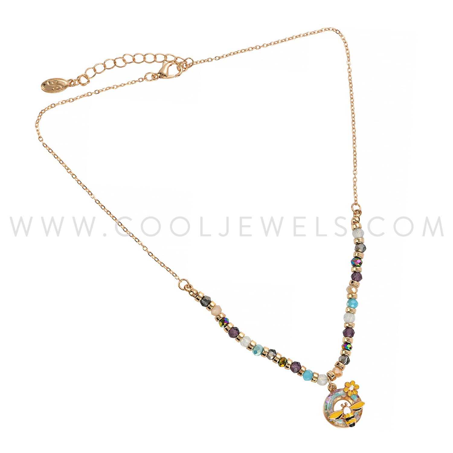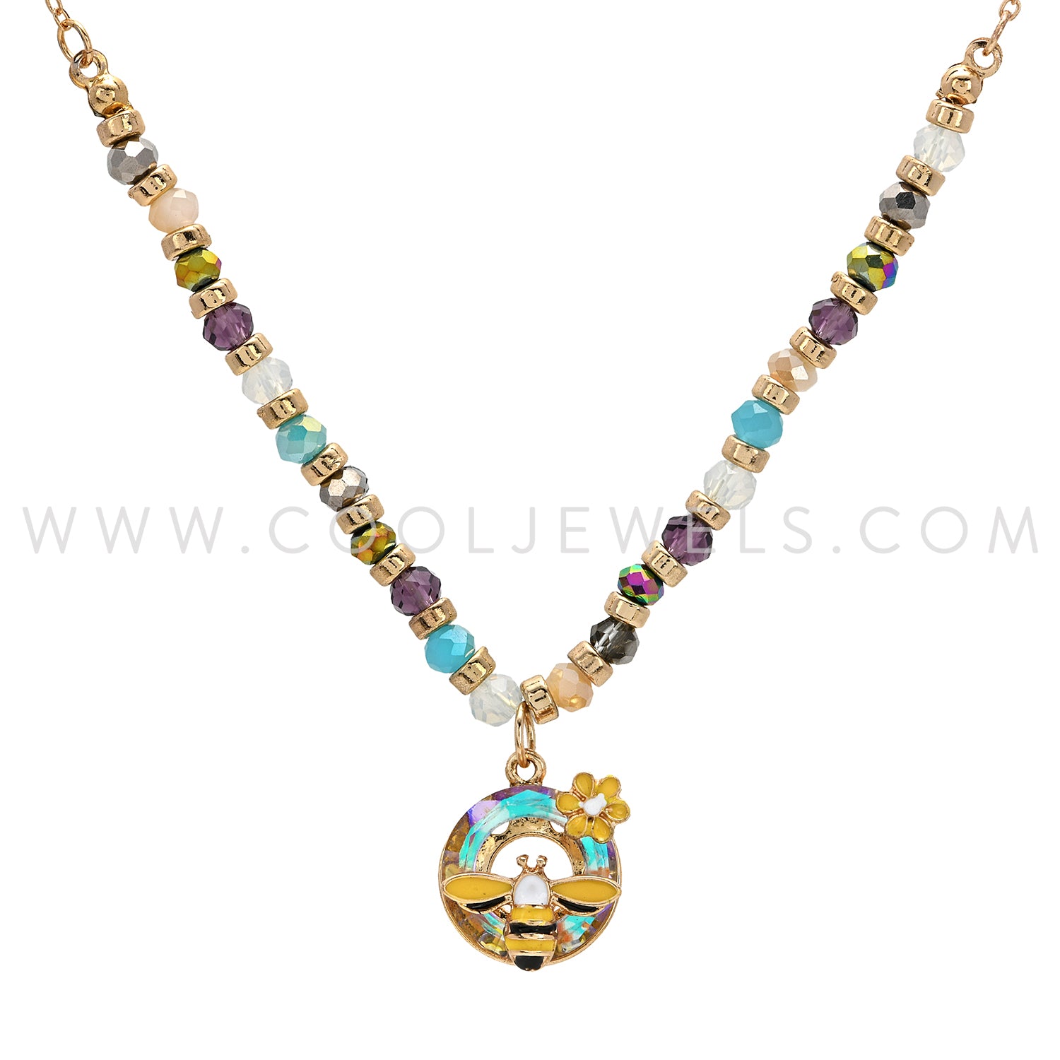 BEADED CHAIN NECKLACE WITH ROUND CRYSTAL BEE PENDANT