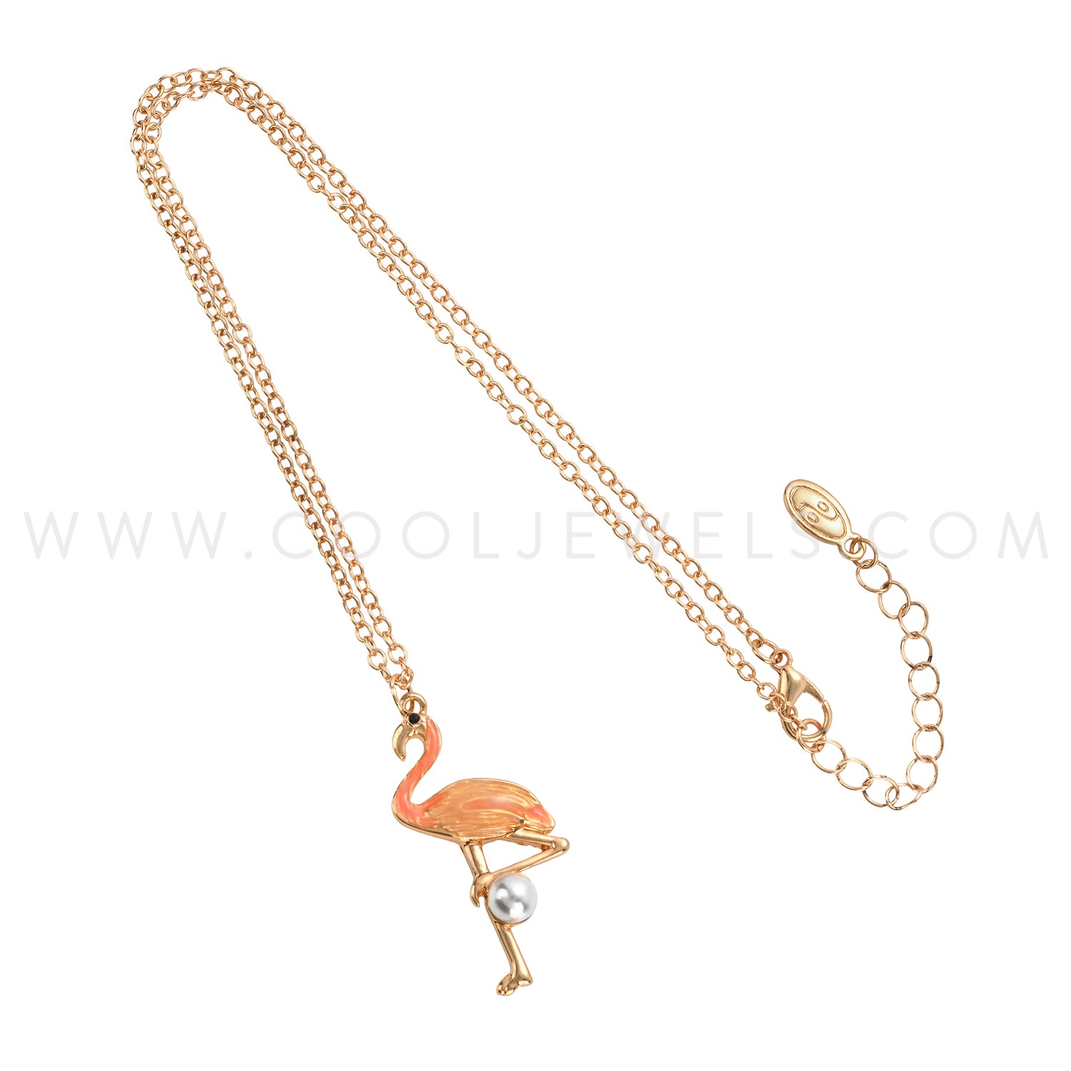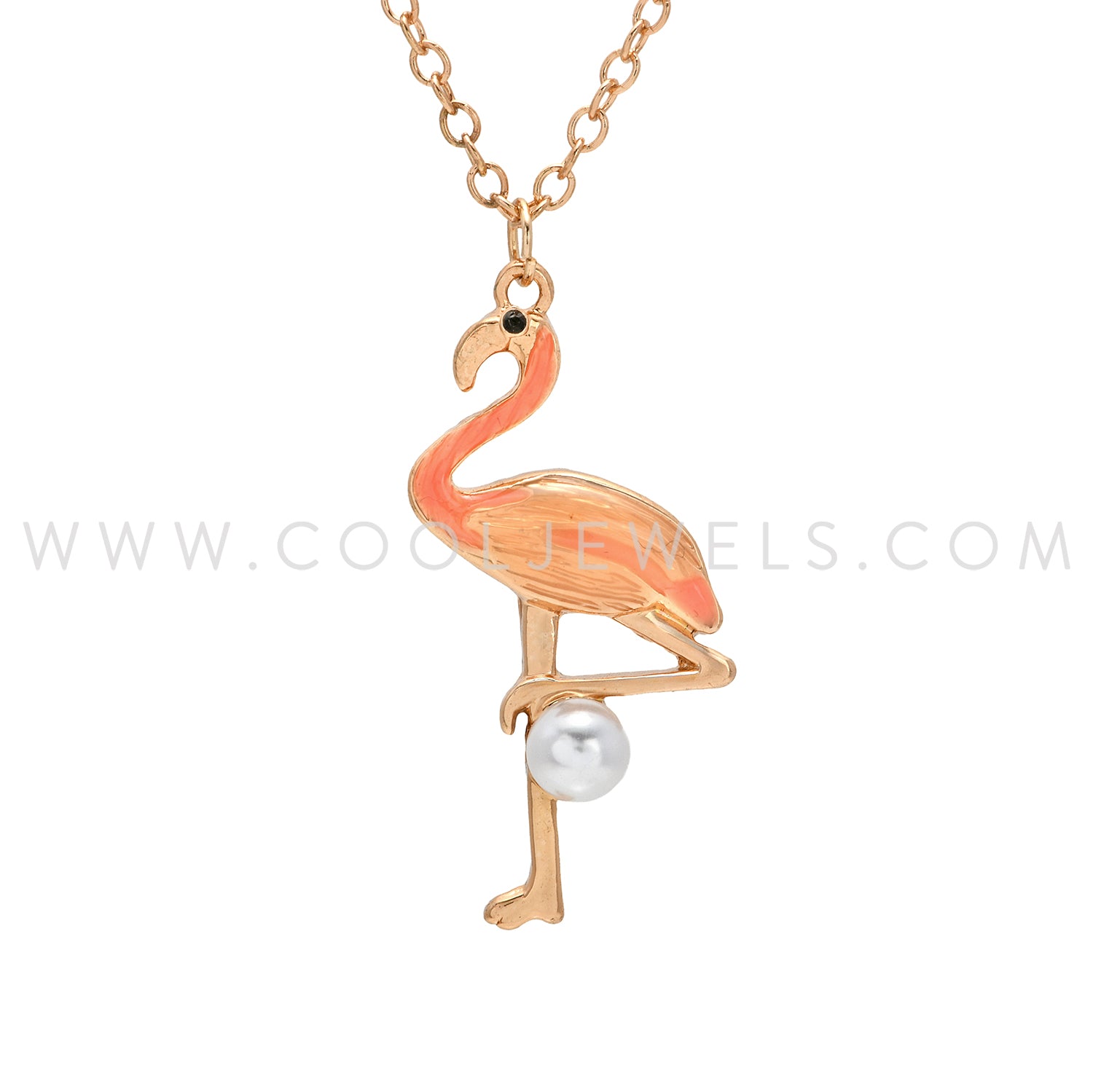 GOLD NECKLACE WITH FLAMINGO AND PEARL