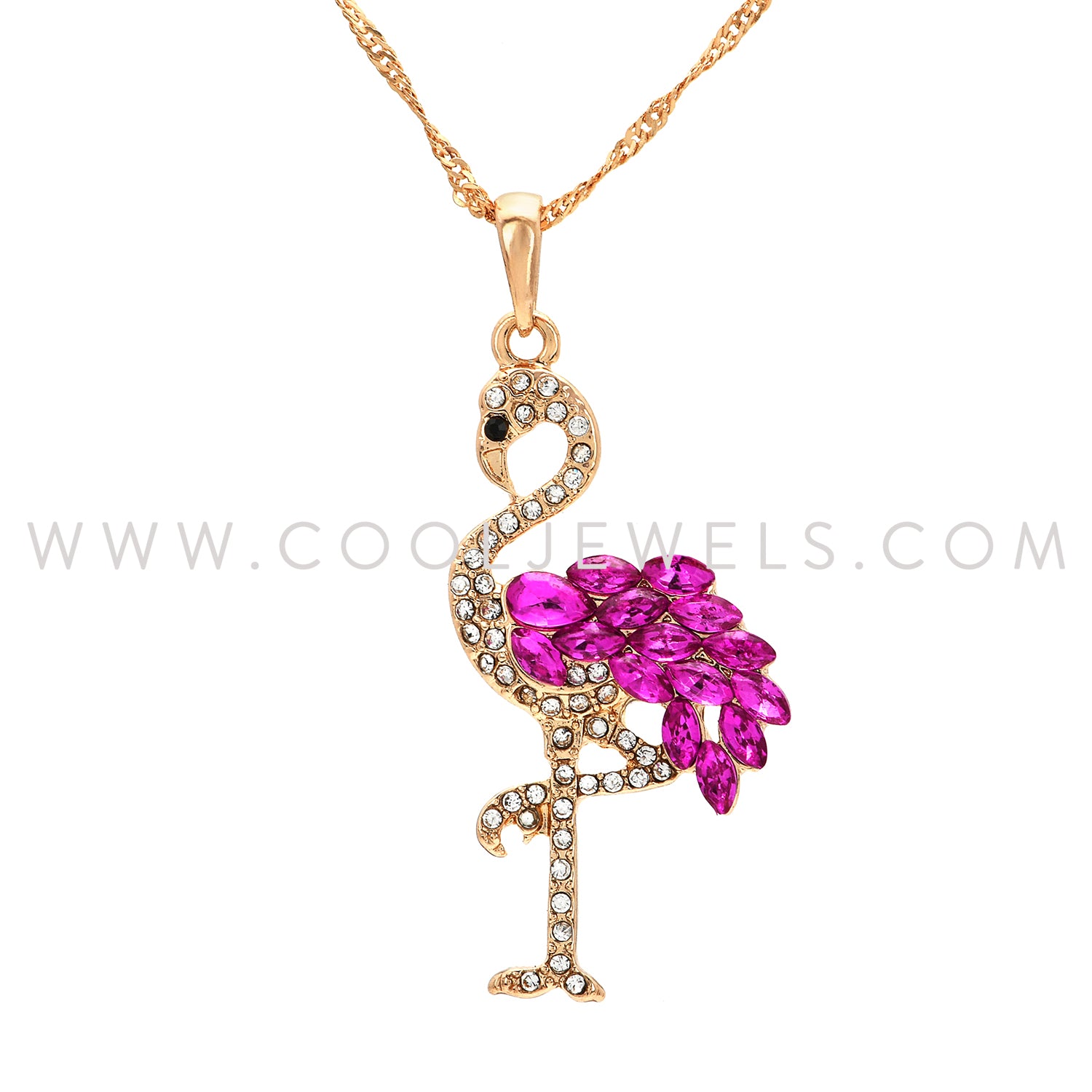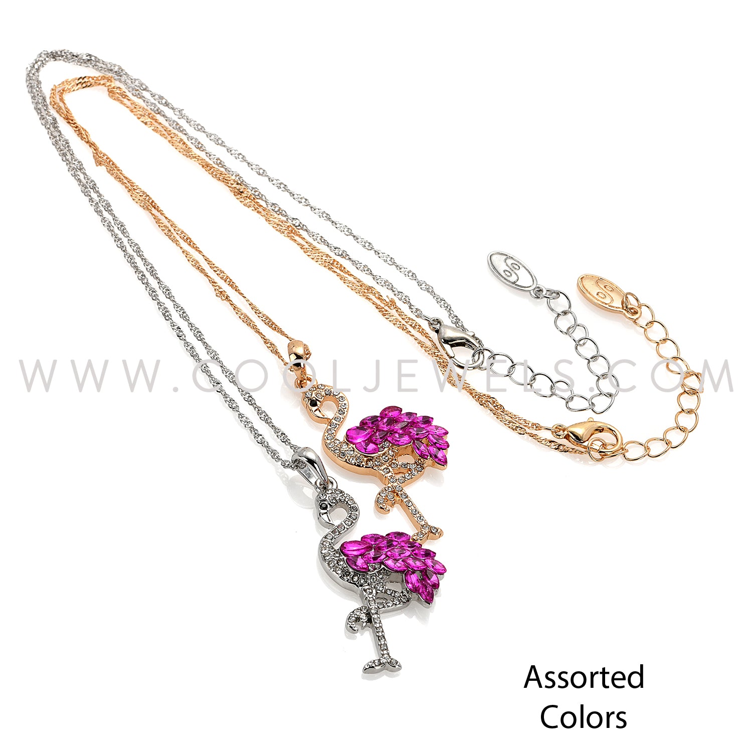 TWIST CHAIN NECKLACE WITH RHINESTONE FLAMINGO PENDANT - ASSORTED
