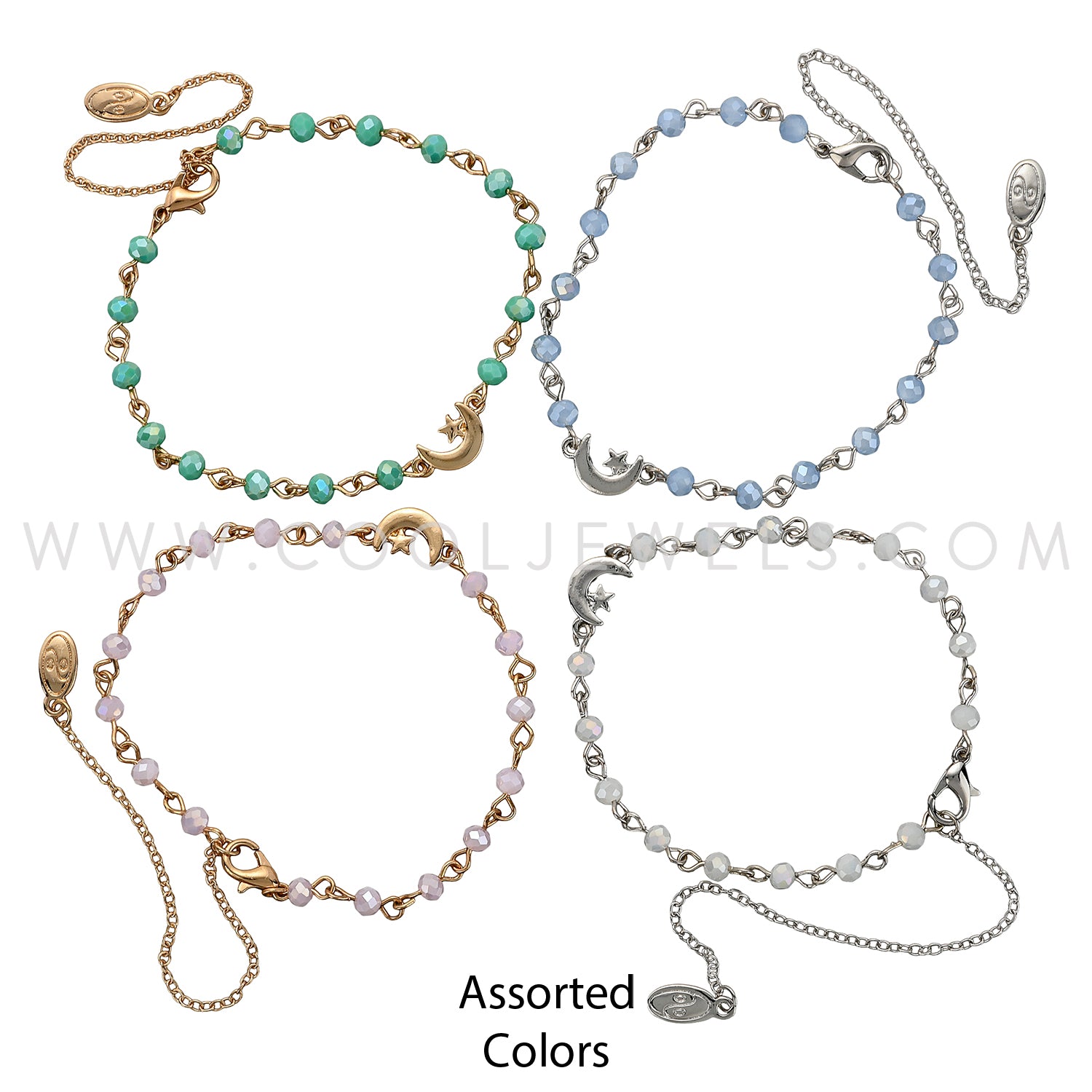 Assorted Moon & Star with Colored Beads Bracelet/Anklet